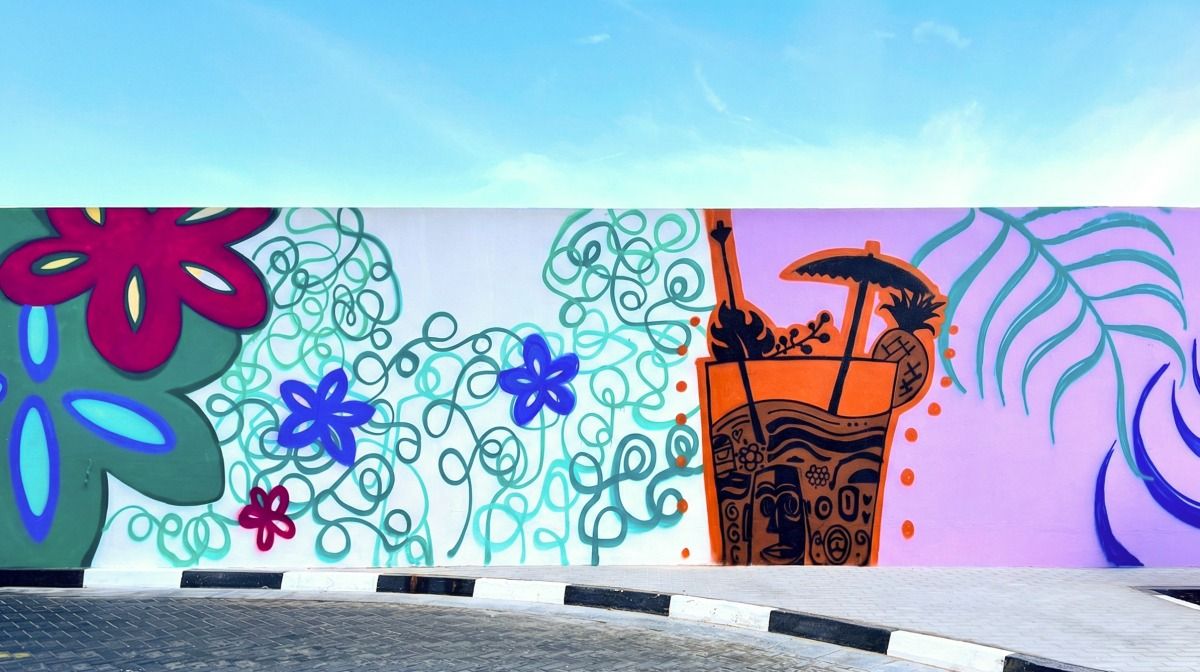 تعكس الجدارية حواراً بصرياً بين هوية علامة هيلتون التجارية والتراث القطري المحلي. وقد صُممت على هيئة مسار نابض بالحياة يقود الضيوف نحو مطعم ترايدر فيكس، حيث تتداخل الألوان الزاهية والتأثيرات البولنيزية الفرنسية التي تعكس الروح الاستوائية للمطعم الشهير. وفي الوقت ذاته، يرتكز هذا الزخم على الثقافة المحلية من خلال دمج أنماط السدو التقليدية والزخارف القطرية الأصيلة، لتنتج لوحة فنية متناغمة يلتقي فيها الطابع الاستوائي بالتراثي، وتتكامل مع المشهد الأيقوني لأفق الدوحة في منطقة ويست باي والكورنيش