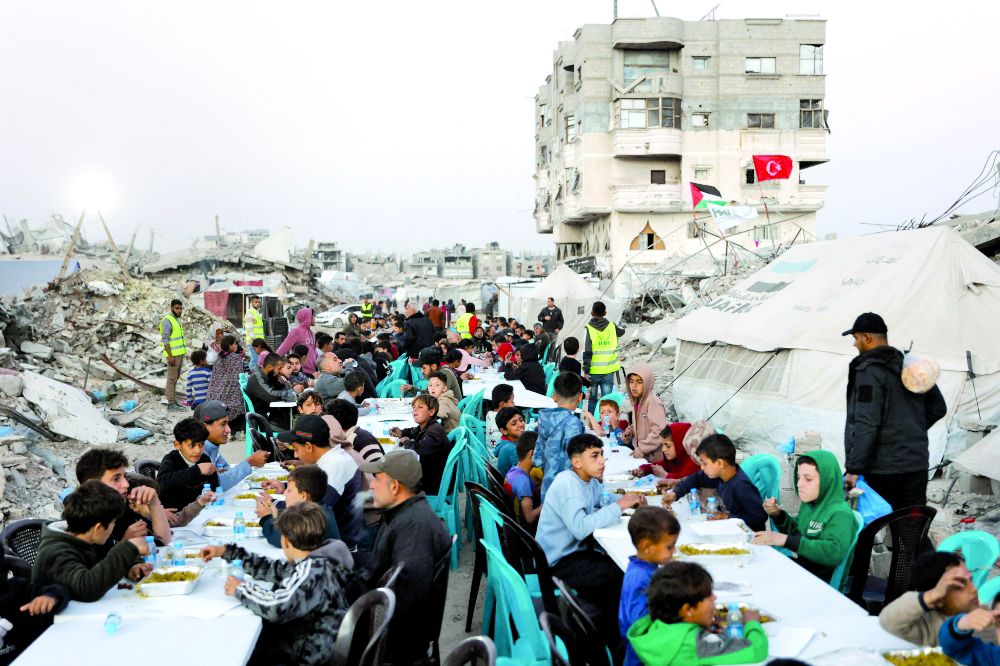تزينت خيام النازحين في قطاع غزة بفوانيس رمضان المضيئة وحبال الزينة الملونة الممتدة بين آلاف الخيام وأنقاض المنازل وهم يستقبلون شهر رمضان بعد عامين من الحرب الإسرائيلية. ومنذ الإعلان ليل الثلاثاء عن بدء شهر الصوم، تجمّع عشرات الفلسطينيين من سكان القطاع في ميدان السرايا بغرب مدينة غزة، والتقطوا الصور بجانب فانوس ضخم مضيء، وجالوا بين المتاجر التي أبقت أبوابها مفتوحة إلى ما بعد منتصف الليل لاستقبال الزبائن. ورفعت في الشوارع بعض الزينة، ومنها فوانيس حمراء علّقت بجانب هلال أصفر، بحسب صحفيين في وكالة فرانس برس.وتجمّع عشرات المصلّين في المسجد العمري في المدينة لأداء صلاة التراويح، في الليلة الرمضانية الأولى التي تحلّ منذ سريان وقف إطلاق النار بين إسرائيل وحماس في 10 أكتوبر، بعد عامين من الحرب التي ألحقت دمارا هائلا بالقطاع وفرضت على سكانه أزمة إنسانية كارثية. ومن بينهم، معاوية كشكو الذي قال إن «شهر رمضان يختلف هذا العام... لم نكن نجرؤ العام الماضي على مغادرة المنزل للصلاة في المسجد خلال الحرب».