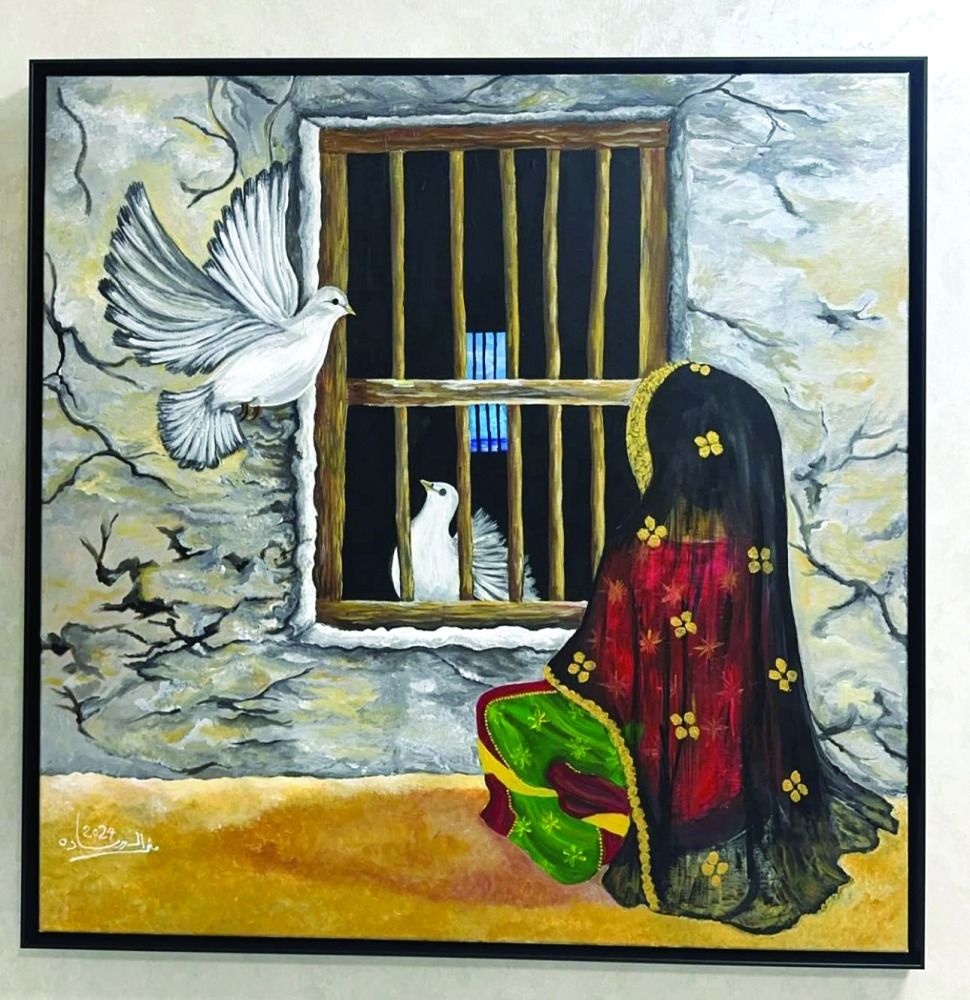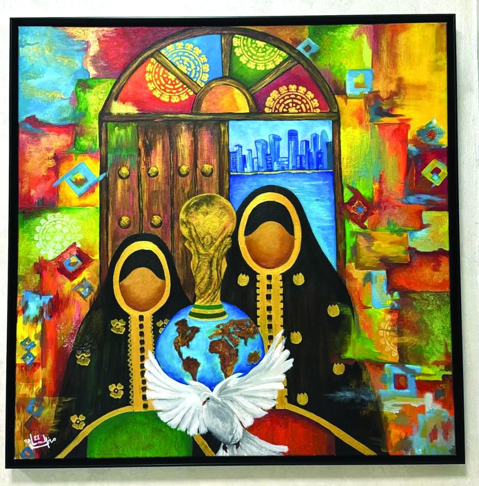 وأشارت الفنانة منى السادة إلى أن من بين الأعمال التي أنجزتها في هذا السياق لوحة رسمتها عام 2022، حرصت من خلالها على إبراز عدد من العناصر الرمزية التي تعكس انفتاح قطر على العالم واستقبالها للزائرين من مختلف الثقافات، وأنها جسدت ذلك عبر بوابة مفتوحة ترمز إلى الترحيب بالجميع، إلى جانب حمامة سلام تعكس الرسالة الإنسانية التي تتبناها قطر في سعيها نحو السلام.