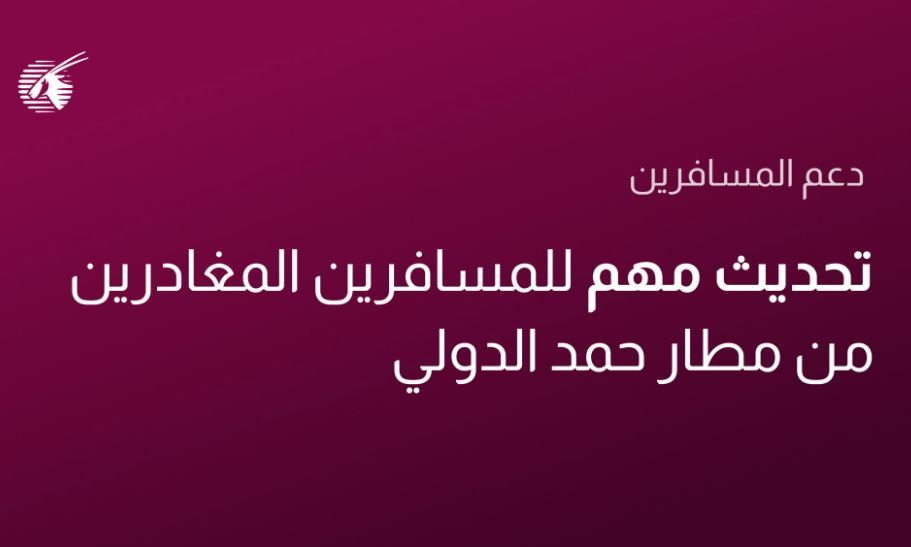 يرجى من المسافرين الكرام تحميل تطبيق الخطوط الجوية القطرية لمتابعة آخر التحديثات أولاً بأول واتباع التعليمات المتوفرة لتغيير رحلتهم على الرابط التالي: http://qatarairways.com/AppHelp