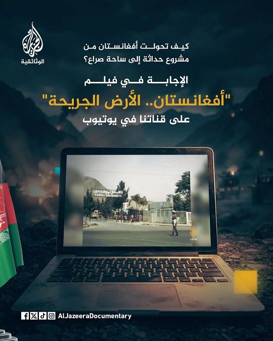 تعرض قناة الجزيرة الوثائقية في قناتها على يوتيوب سلسلة «أفغانستان.. الأرض الجريحة»، وتتناول السلسلة قصة صراع شكّل القرن الحادي والعشرين وغيّر ملامح الشرق الأوسط، وهو صراع ما زالت انعكاساته تُلقي بظلالها على العالم العربي حتى اليوم.