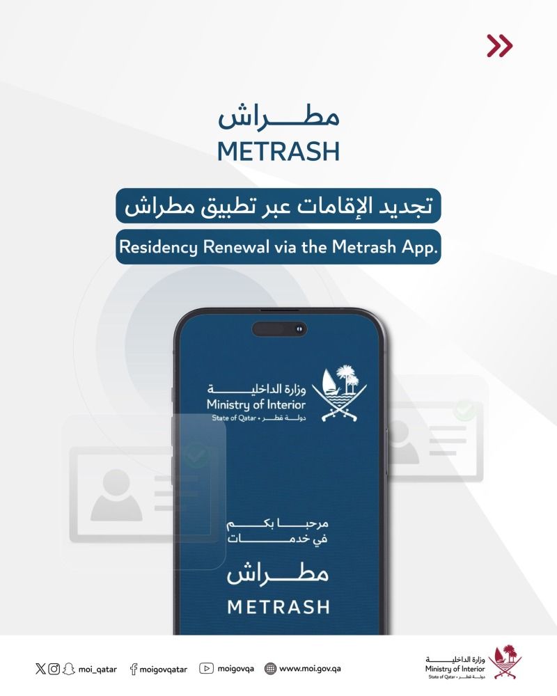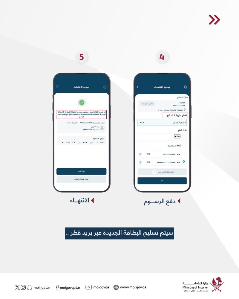 ونبّهت وزارة الداخلية إلى أن تسليم بطاقة الإقامة الجديدة سيتم عبر بريد قطر.
