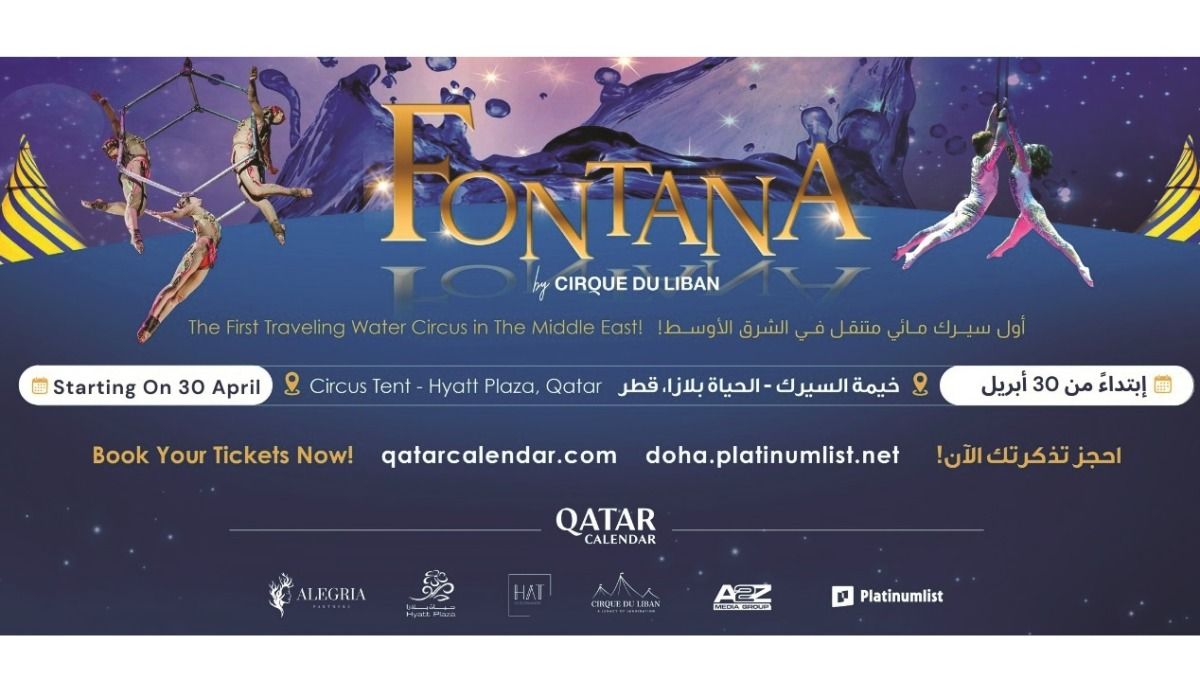 أعلنت «رزنامة قطر» عن الموعد الجديد لعرض «فونتانا» لـ «سيرك دو ليبان» في الدوحة، والذي كان من المقرر إقامته خلال الفترة من 20 مارس إلى 18 أبريل 2026 في «حياة بلازا»، ليبدأ في 30 أبريل 2026 ويمتد حتى 31 مايو 2026، وذلك في خيمة السيرك بساحة «حياة بلازا» في قطر. ويُرجى من حاملي التذاكر الاحتفاظ بتذاكرهم ومتابعة منصة حجز التذاكر الرسمية للاطلاع على أي تحديثات إضافية. كما سيتم ترحيل التذاكر التي تم شراؤها مسبقاً تلقائياً إلى الموعد الجديد بنفس الفئة، دون الحاجة لاتخاذ أي إجراء إضافي.