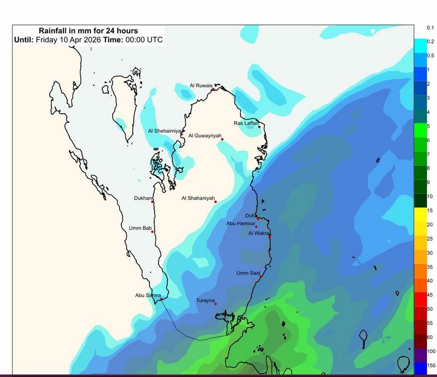 توقعت إدارة الأرصاد الجوية أن تكون الأجواء غائمة جزئياً إلى غائمة مع فرص لهطول أمطار متفرقة قد تكون رعدية أحياناً، وذلك من يوم الخميس 9 إبريل 2026 وحتى مطلع الأسبوع القادم على فترات متقطعة.