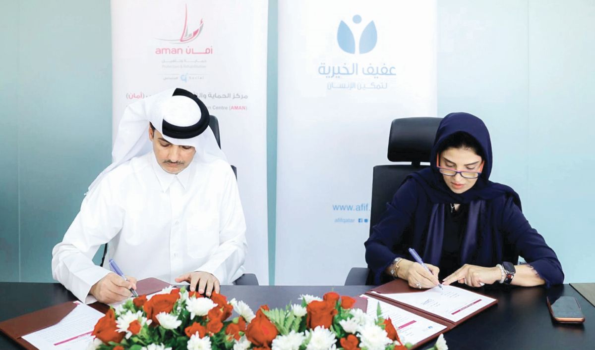 وقع مركز الحماية والتأهيل الاجتماعي (أمان)، أحد مراكز المؤسسة القطرية للعمل الاجتماعي، اتفاقية تعاون مع مؤسسة عفيف الخيرية، حيث وقع الاتفاقية كل من السيد فضل الكعبي المكلف بمهام المدير التنفيذي لمركز أمان، ومن مؤسسة عفيف الخيرية السيدة زليخة الاصمخ القائم بأعمال الرئيس التنفيذي.