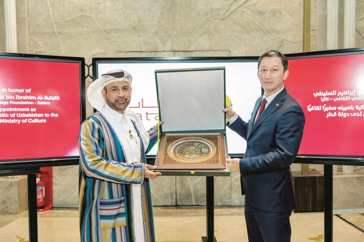 وبيَّن أن هذا اللقب الفخري «السفير الثقافي لأوزبكستان لدى دولة قطر» يُمنح لأول مرة لشخصية مرموقة في دولة قطر. معربا عن بالغ تقديره لكتارا، بقيادة سعادة د. خالد بن إبراهيم السليطي، في تعزيز الدبلوماسية الثقافية بين قطر وأوزبكستان. مشيرا إلى أن كتارا أصبحت تشكل منصة فريدة تجمع بين التميز والتنوع الثقافي، ومن هذا المنطلق، تم تكريم سعادته بمنحه لقب «السفير الثقافي لأوزبكستان لدى دولة قطر اعترافًا بإسهاماته الاستثنائية في ترسيخ مكانة قطر كمركز ثقافي عالمي وتعزيز أواصر الصداقة والتفاهم بين الشعبين.