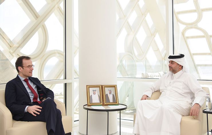 اجتمع سعادة الشيخ محمد بن حمد بن فيصل آل ثاني الرئيس التنفيذي لهيئة المناطق الحرة - قطر، مع سعادة السيد أرنو بيشو سفير الجمهورية الفرنسية لدى الدولة.