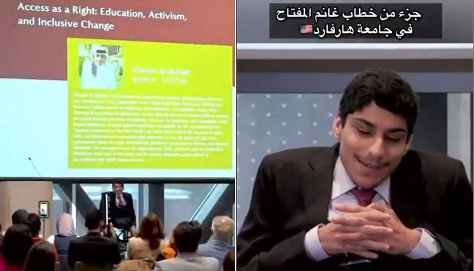 صورة من فيديو كلمة غانم المفتاح في جامعة هارفارد