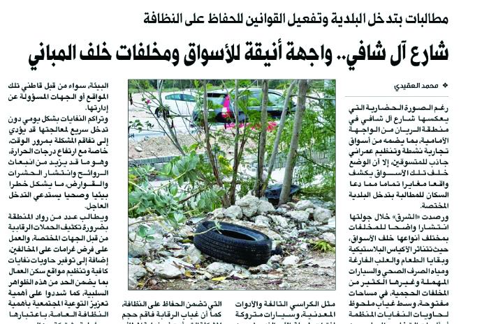 أكدت وزارة البلدية تفاعلها السريع مع ما تم نشره في جريدة «الشرق» بشأن أوضاع النظافة خلف الأسواق التجارية في شارع آل شافي بمنطقة الريان، مشددة على حرصها الدائم على متابعة الملاحظات التي ترد عبر وسائل الإعلام، باعتبارها شريكا أساسيا في رصد التحديات الميدانية وتعزيز جودة الخدمات البلدية.