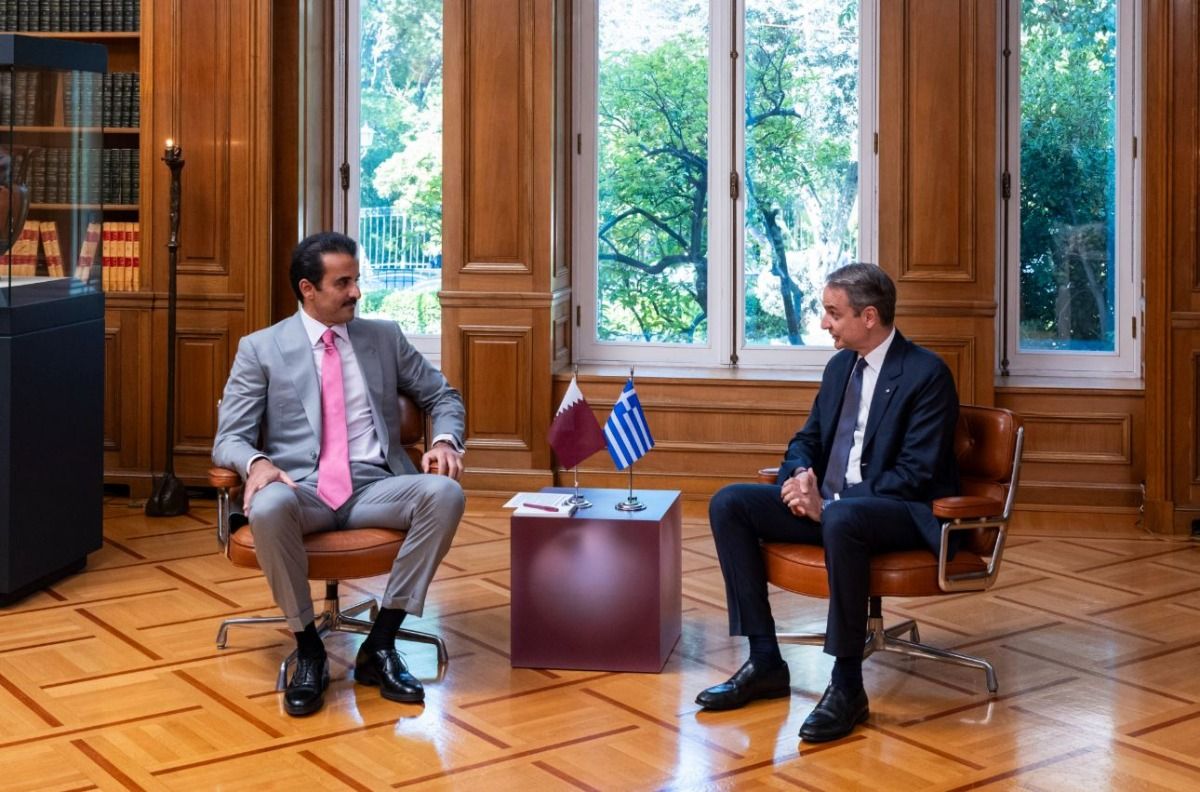 عقد حضرة صاحب السمو الشيخ تميم بن حمد آل ثاني أمير البلاد المفدى، ودولة السيد كيرياكوس ميتسوتاكيس رئيس وزراء الجمهورية اليونانية الصديقة، جلسة مباحثات رسمية اليوم في قصر ماكسيموس بالعاصمة أثينا.