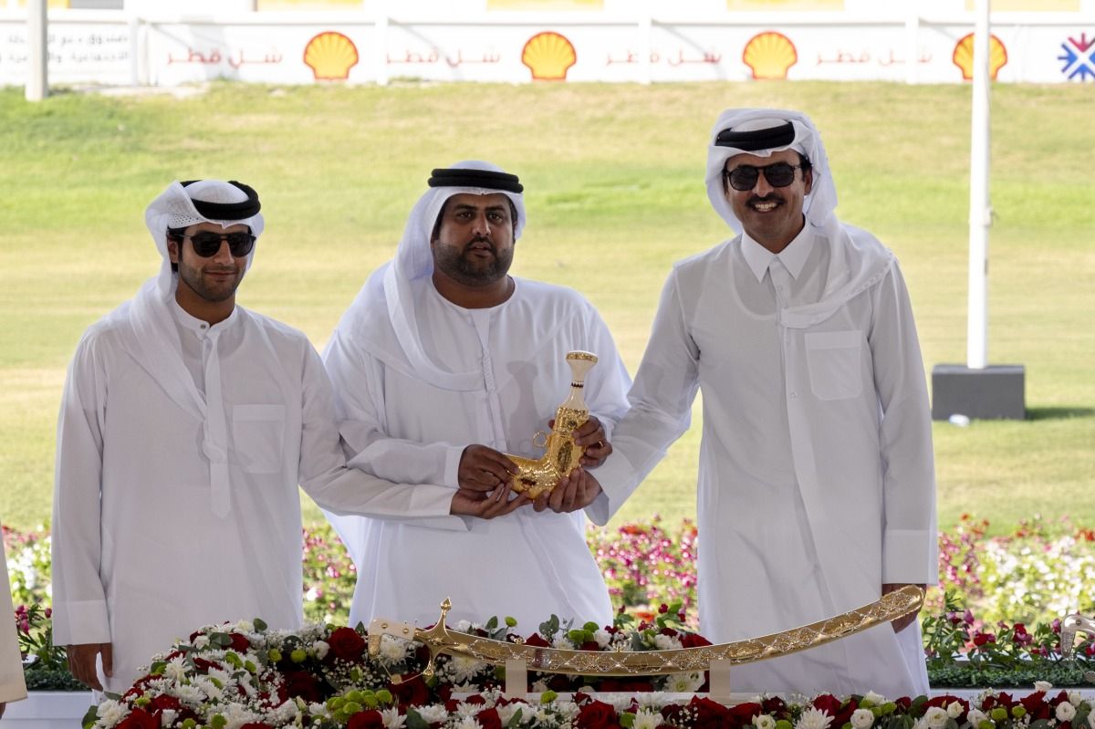 وقام سموه بتتويج الفائزين في الأشواط الأربعة الرئيسية لمنافسات سن الحيل والزمول (أشواط مفتوحة) لهجن أصحاب السعادة الشيوخ على الرموز الذهبية، حيث توجت "دولة" ملك الرئاسة بالسيف الذهبي في شوط حيل مفتوح، وفازت "القحيدية" ملك هجن الشيحانية بالشلفة الذهبية في شوط حيل عمانيات، فيما حصل كل من "نهاب" و "لوسيل" ملكي هجن الرئاسة وهجن أم الزبار على الخنجرين الذهبيين في شوطي الزمول مفتوح وعمانيات تواليا.
