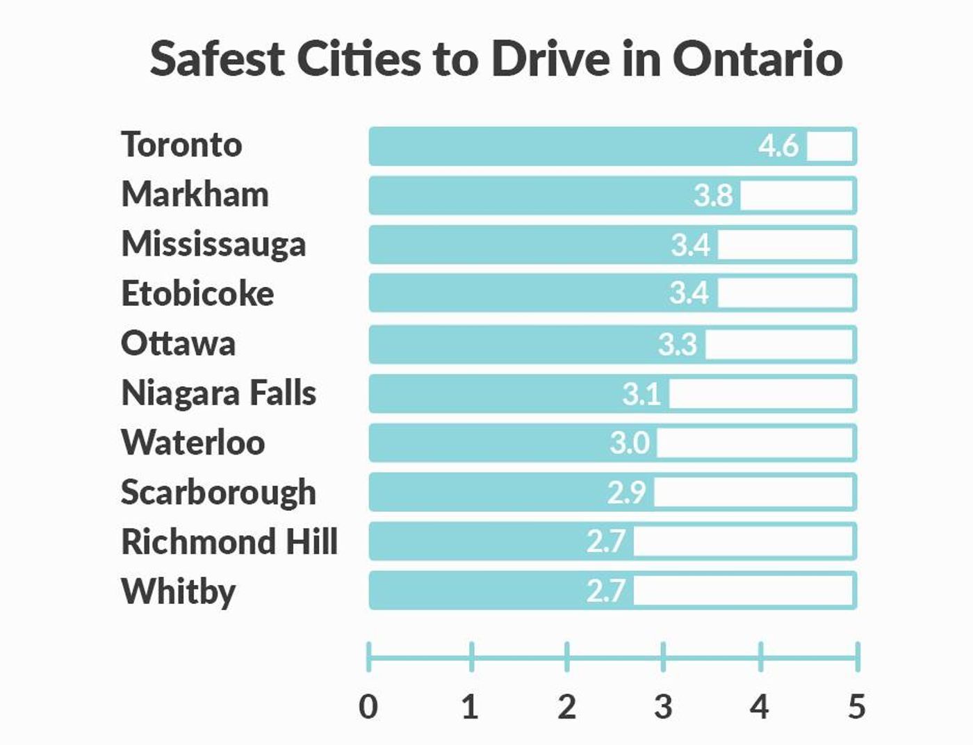 على عكس التوقعات، حافظت تورنتو على لقب أكثر المدن أمانًا للقيادة في أونتاريو، بعد حصولها على تقييم 4.6.