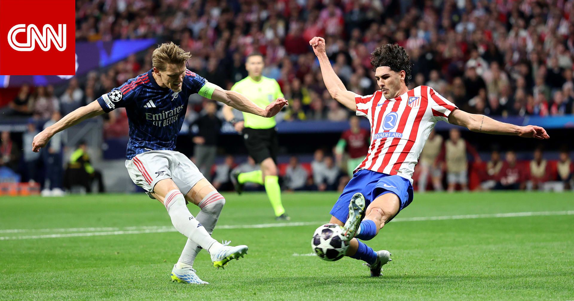 اخبارالعرب 24-كندا:الأربعاء 29 أبريل 2026 05:49 مساءً دبي، الإمارات العربية المتحدة (CNN) -- تعادل نادي أتلتيكو مدريد الإسباني مع نظيره أرسنال الإنجليزي بهدف لمثله، على أرض ملعب "ميتروبوليتانو"، الأربعاء، في ذهاب نصف نهائي دوري أبطال أوروبا (تشامبيونزليغ).