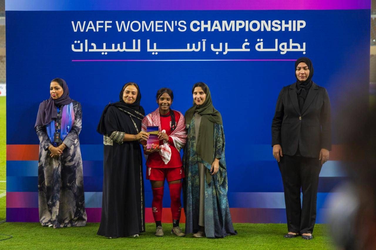 وعلى الرغم من عدم صعود المنتخب السعودي إلى منصة التتويج، خطفت لاعبة “الأخضر” البندري مبارك الأنظار بفوزها بجائزة هدافة البطولة بعد مستويات مميزة قدمتها منذ انطلاقة المنافسات.