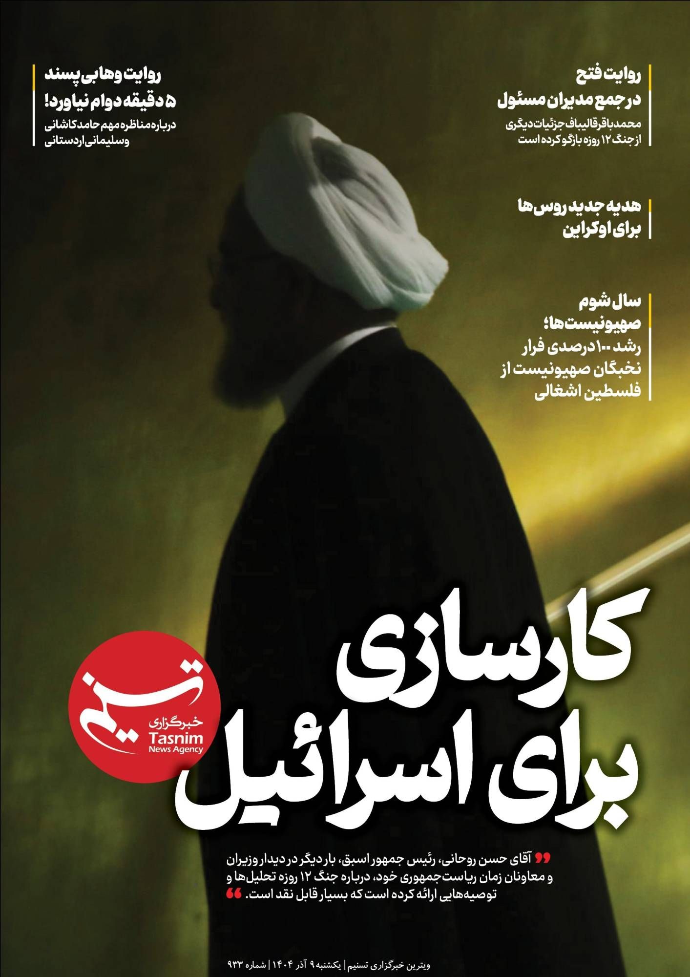 وعنونت الوكالة ملحقها الأسبوعي لتحليل التطورات المهمة بعنوان «العمل لصالح إسرائيل»، واضعة صورة روحاني على الغلاف. واتهمته بتقديم «تفسيرات نرجسية ومشحونة بالغرور» حول مزاعمه بأنه منع وقوع حرب على إيران عبر الدبلوماسية خلال توليه مناصب سابقة. وتساءلت: «هل كان روحاني يدعي أنه لم يكن هناك أي رادع غير مفاوضاته يمنع الحرب؟ وأن أميركا وإسرائيل كانتا في كامل طاقتيهما آنذاك، وأن إيران لم تكن تمتلك أي قدرة ردعية، وأنه وحده بمنطقه السقراطي والأرسطي حال دون اندلاع حرب كبيرة؟».