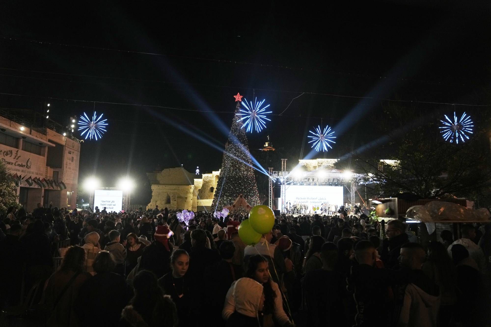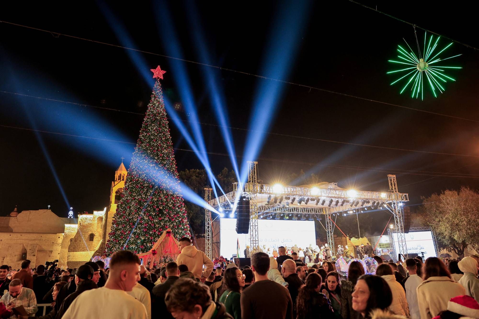 أضيئت شجرة عيد الميلاد، السبت، في ساحة كنيسة المهد بمدينة بيت لحم في الضفة الغربية بحضور عدد من رجال الدين والمسؤولين والدبلوماسيين والمواطنين والسياح من زوار المدينة إيذاناً ببدء الاحتفالات بعيد الميلاد.