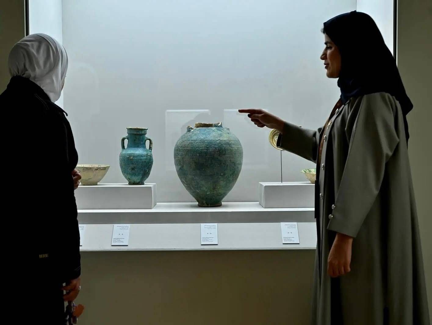 ويقدّم جناح دولة قطر في المعرض مجموعة من القطع الأثرية التي توضح ملامح التطوّر التاريخي لدولة قطر، وما تعكسه من تحوّلات في البيئات والمجتمعات عبر الحقب الزمنية المختلفة.