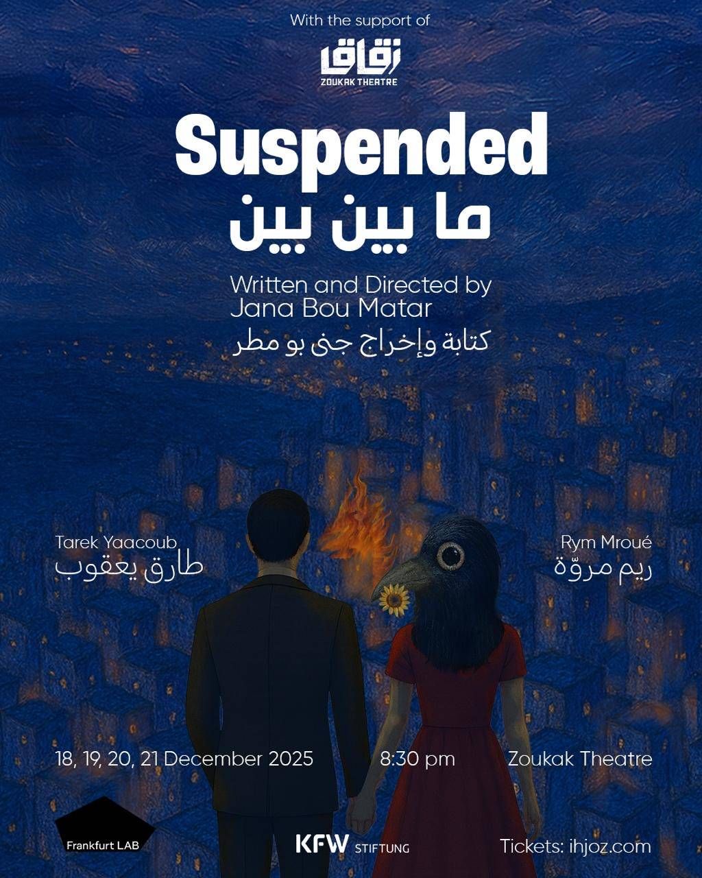 يلعب بطولة المسرحية طارق يعقوب وريم مروّة، وهي من تأليف جنى بو مطر وإخراجها. وتوضح لـ«الشرق الأوسط»: «تحمل تساؤلات كثيرة. وتتمحور فكرتها الأساسية حول نصّ يتناول الحداد الطويل الذي نختبره إثر تعرّضنا للخسارة. حدادٌ يبقى معلّقاً بين الفكر والجسد، فلا نعرف كيف نعبّر عن حزننا، ولا كيف نصغي إلى أجسادنا المُتعبة ونحاكي آلامها». وتتابع: «طبيعة خساراتنا بلا مادة محسوسة. فكما هي الحال مع الأزمة الاقتصادية وانفجار المرفأ والحرب في الجنوب، لم نستطع حتى اليوم تفسير ما أصابنا. ومن هنا يبرز السؤال الكبير: كيف يمكننا التخلُّص من أثر هذه الخسارات علينا، والتخفيف من ثقلها الذي لا يُرى ولكنه ينهكنا؟».