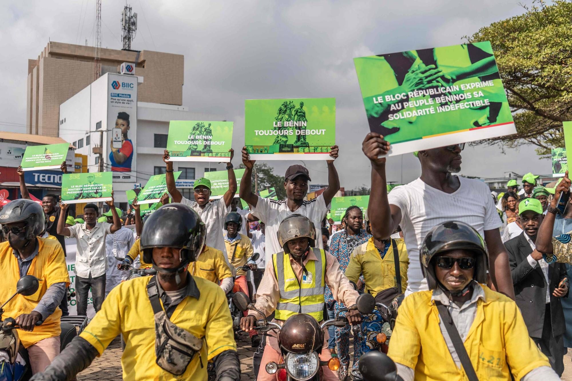 ورفع المتظاهرون شعارات بينها «تهانينا لقوات الأمن»، و«بنين لا تزال صامدة»، و«نحو مستقبل يسوده الاستقرار والعدالة والسلام».