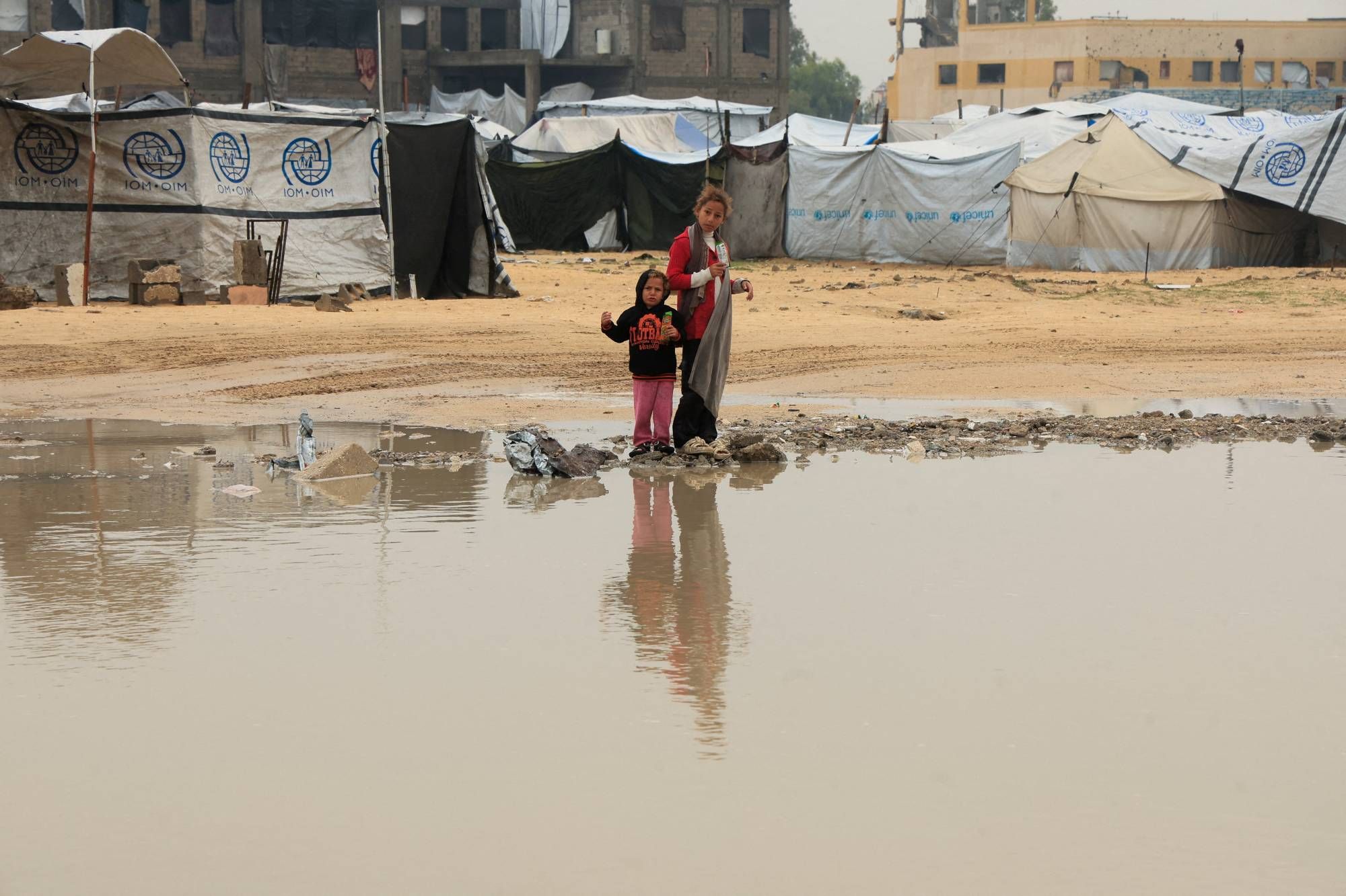 خيمة من النيلون فى مواجهة الشتاءوقف الفلسطيني إسماعيل مرشد من قطاع غزة في منتصف خيمته يندب حظه بعد أن غمرتها مياه الأمطار جراء منخفض جوي عميق يضرب المنطقة. وسيطرت على مرشد، الذي يقطن مع زوجته و5 من أطفاله داخل خيمة في مرفأ ميناء غزة البحري بعد نزوحه من بيته في حي الشجاعية شرق مدينة غزة، حالة من الحزن والغضب على ما وصل إليه حاله.
