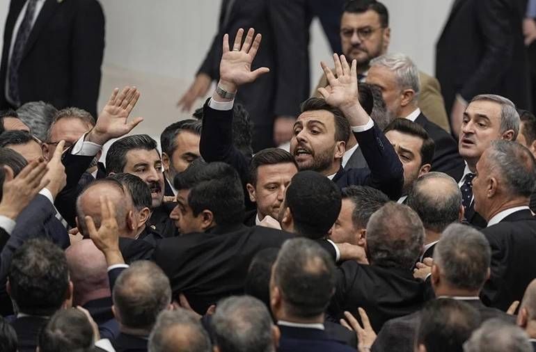 ووافق البرلمان التركي، ليل الأحد – الاثنين، بعد جلسة عاصفة شهدت اشتباكات بالأيدي بين نواب حزبَي «العدالة والتنمية»، الحاكم، و«الشعب الجمهوري»، أكبر أحزاب المعارضة، على خلفية هجوم نائب الحزب الحاكم عن مدينة بورصة (غرب) وزير الصناعة والتكنولوجيا السابق، مصطفى فارانك، على رئيس حزب الشعب الجمهوري، أوزغور أوزيل، في موضوعات لا تتعلق بمناقشات مشروع الموازنة.