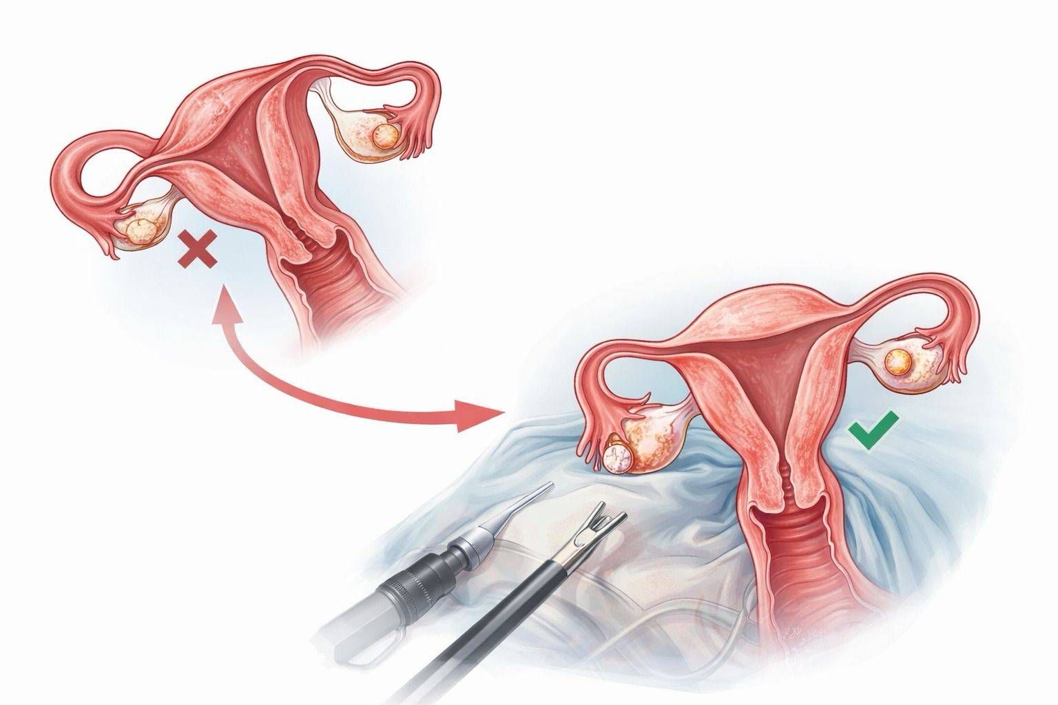 - تعتمد التقنية على إعادة التموضع التشريحي الدقيق للرحم إلى وضعه الأمامي الطبيعي، مع إنزال المبيضين وقناتي فالوب إلى موضع أقرب لقاع الحوض، بما يسمح للأنابيب باستعادة وظيفتها الفيسيولوجية الطبيعية في التقاط البويضة بعد الإباضة.