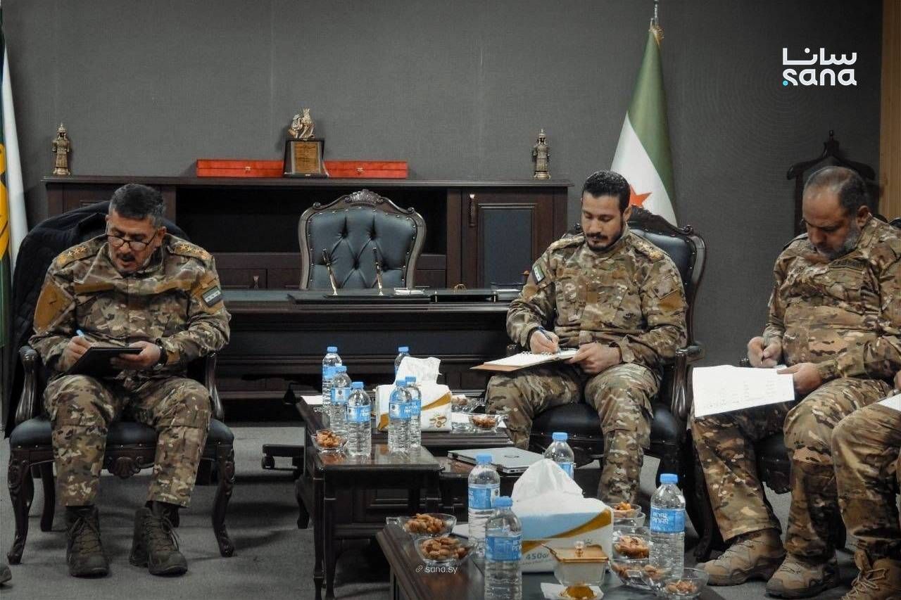 وقالت وزارة الدفاع إن الاجتماع بحث آخر التطورات الميدانية، وجاهزية وانتشار التشكيلات العسكرية في المنطقة، حسب وكالة الأنباء الرسمية (سانا). وذكرت وزارة الدفاع في منشور عبر قناتها على «تلغرام»، أنه جرى بحث آخر التطورات الميدانية، وجاهزية وانتشار التشكيلات العسكرية في المنطقة.