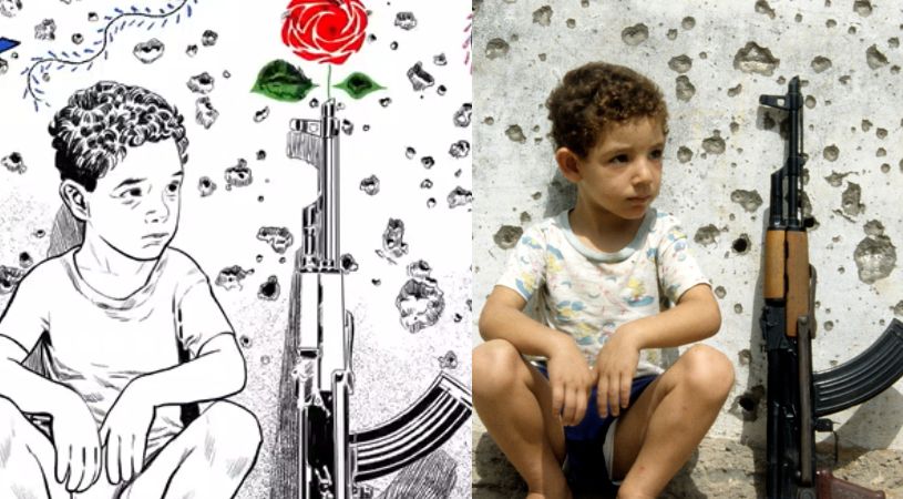 غفت الأحداث في ذاكرة جورج مكتبي، إلى أن أيقظتها قبل مدّة مجموعة صور التقطتها عدسة المصوّر الصحافي رمزي حيدر خلال الحرب اللبنانية. هنا طفلٌ يسند الحائط بجسده الصغير، وببندقيّة تعادلُه طولاً، وهناك فتاةٌ بُترت ساقُها فاستندت إلى عكّازَين، فيما الولد الذي إلى جانبها في الصورة يستند إلى سلاحٍ رشّاش.