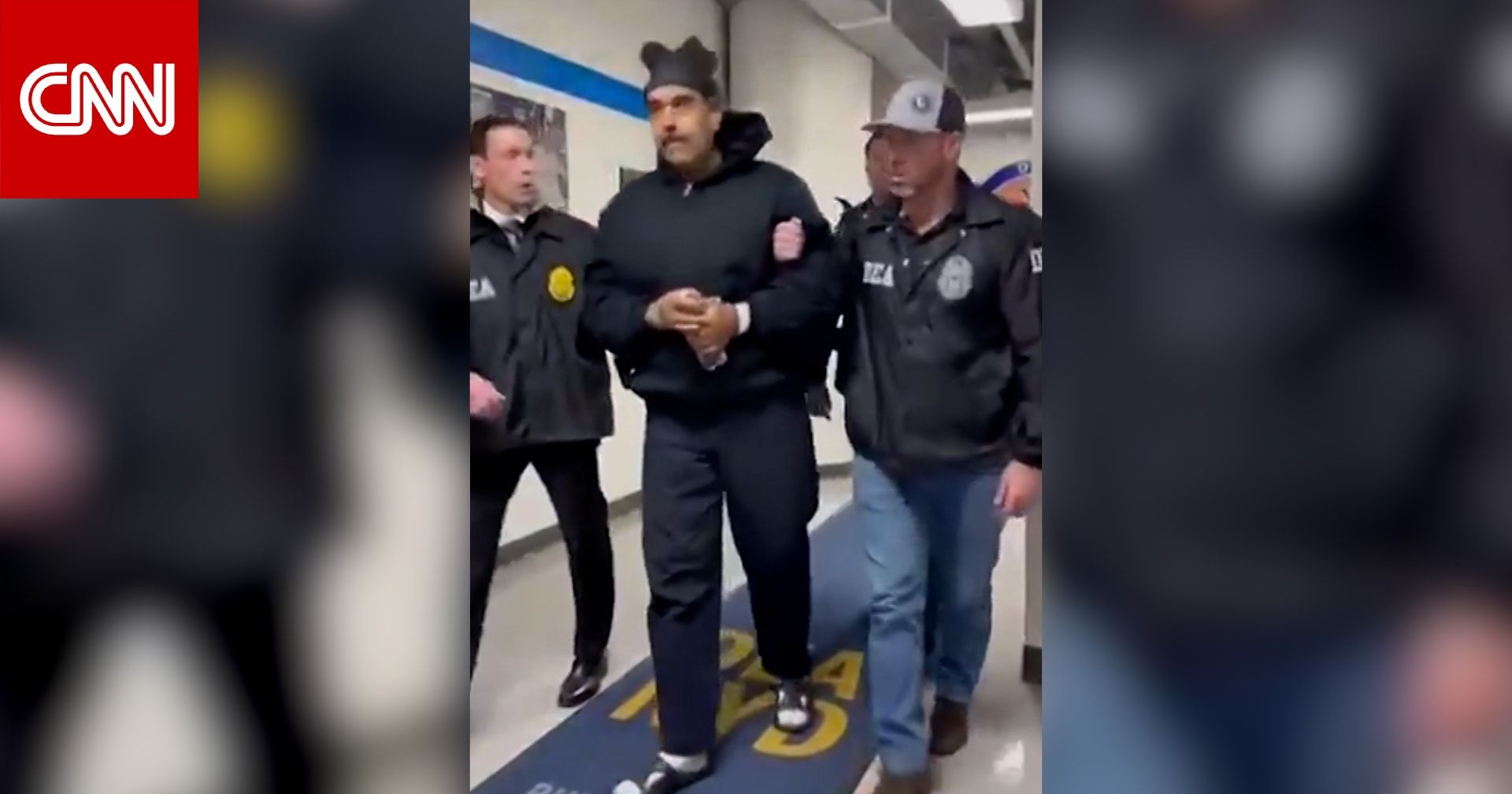 اخبارالعرب 24-كندا:الأحد 4 يناير 2026 12:13 صباحاً نشر حساب البيت الأبيض الرسمي للرد السريع، مقطع فيديو يُظهر ما يبدو أنه اقتياد الرئيس الفنزويلي المخلوع نيكولاس مادورو داخل منشأة احتجاز أمريكية.
