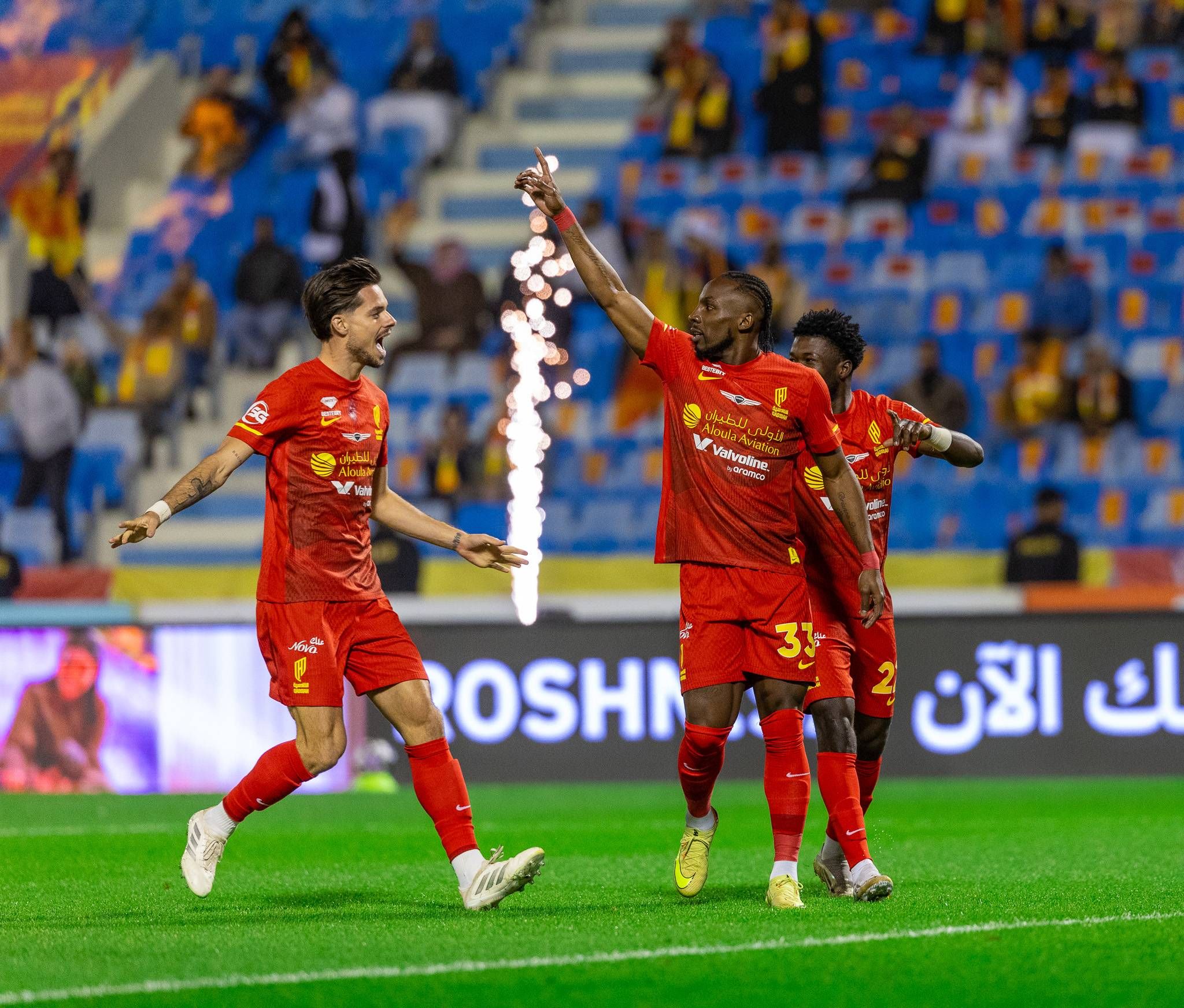وواصل الهولندي جيورجينهو فاينالدوم عروضه القوية مع الاتفاق بتسجيل ثنائية في شباك الأخدود، ليرفع رصيده إلى 9 أهداف هذا الموسم محتلاً المركز الرابع في قائمة الهدافين.