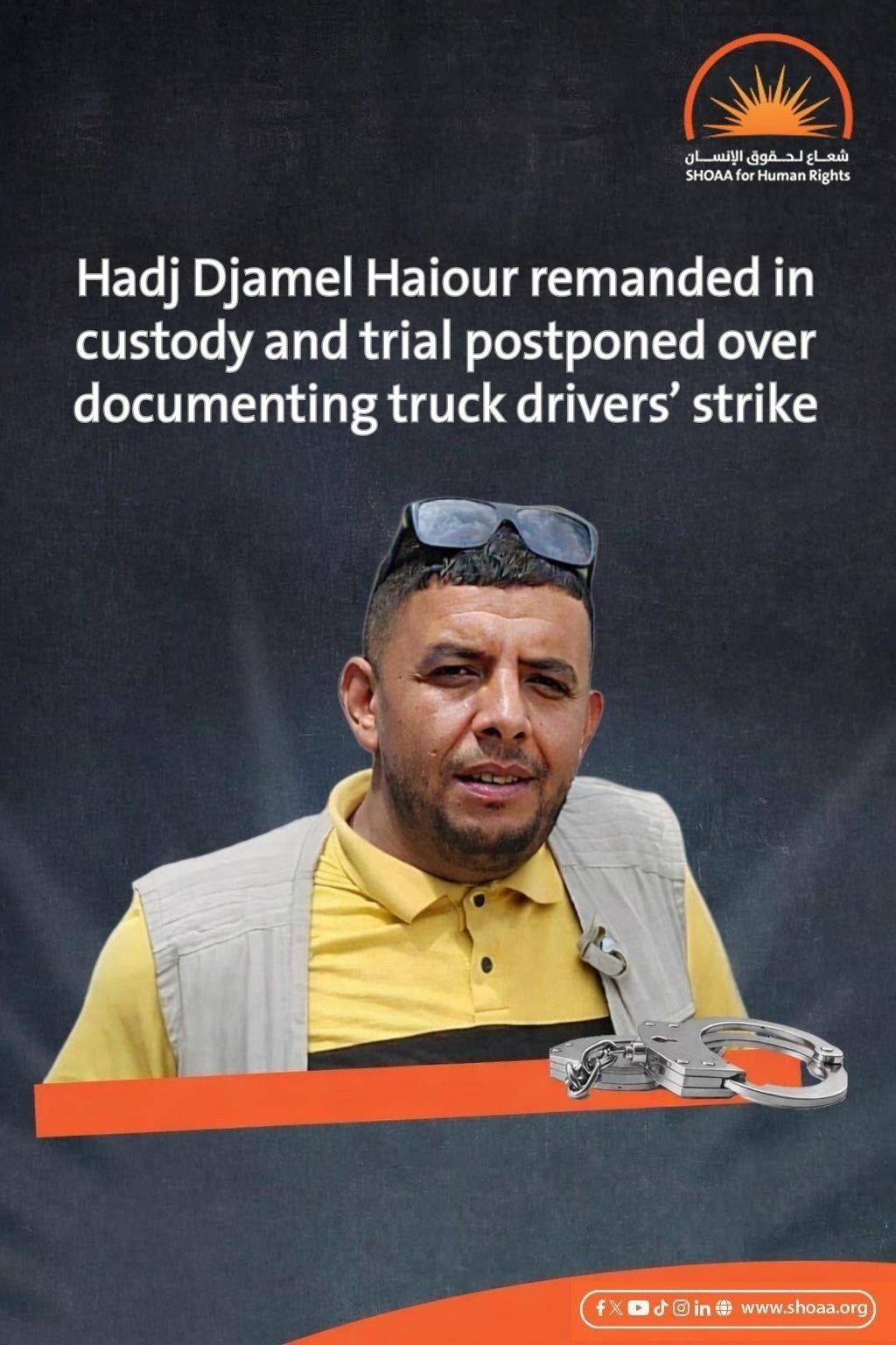 وبحسب المنظمة الحقوقية، التي يوجد مقرها بلندن، «يواجه جمال هيور تهماً عدة، من بينها التحريض على الإضراب، على خلفية قيامه بتصوير ونشر مقطع فيديو في فاتح يناير الحالي، وثَّق فيه إضراب سائقي الشاحنات المحتجين على دخول قانون المرور الجديد»، موضحةً أن «الفيديو اقتصر على نقل وقائع الإضراب ومطالب الناقلين، مع الدعوة إلى إيصالها إلى رئاسة الجمهورية، في إطار احتجاج مهني سلمي عرفه قطاع النقل».