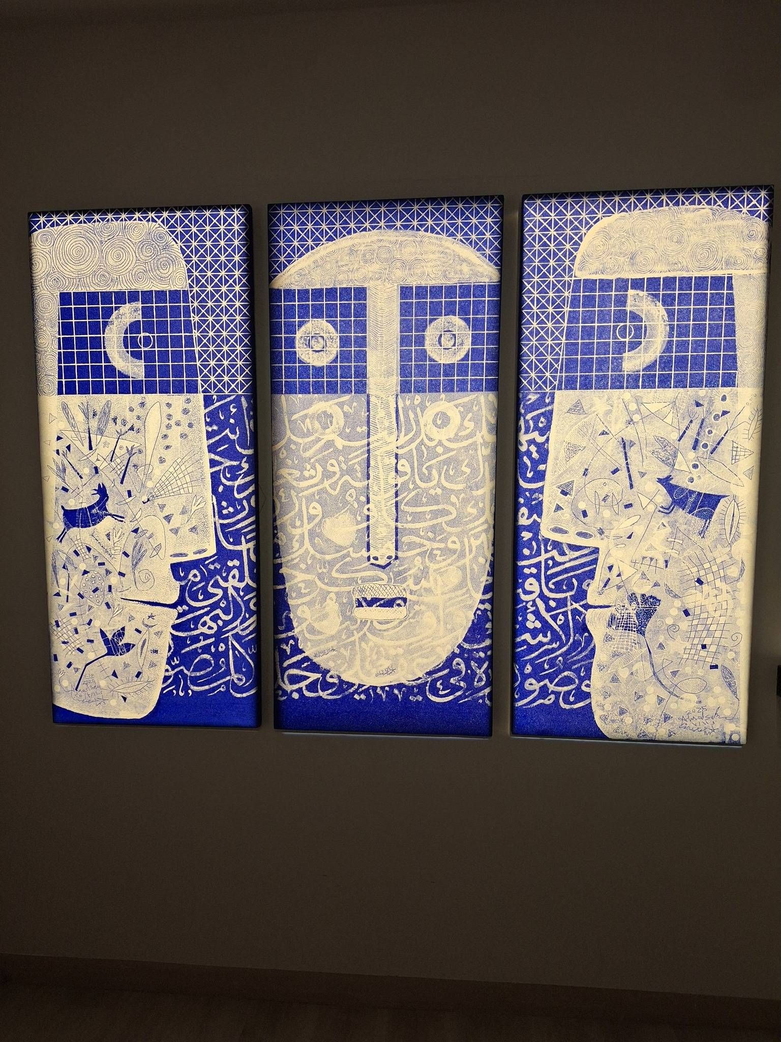 لقد استوعبها جيداً، واستحضرها وأعادها بإيقاع آخر جديد يجمع بين الخط الصريح المتعامد والمسطح الغني بالتفاصيل والمعالجة العصرية المحملة بالشفرات التي لا يسع المتلقي أمامها سوى محاولة فك أسرارها.