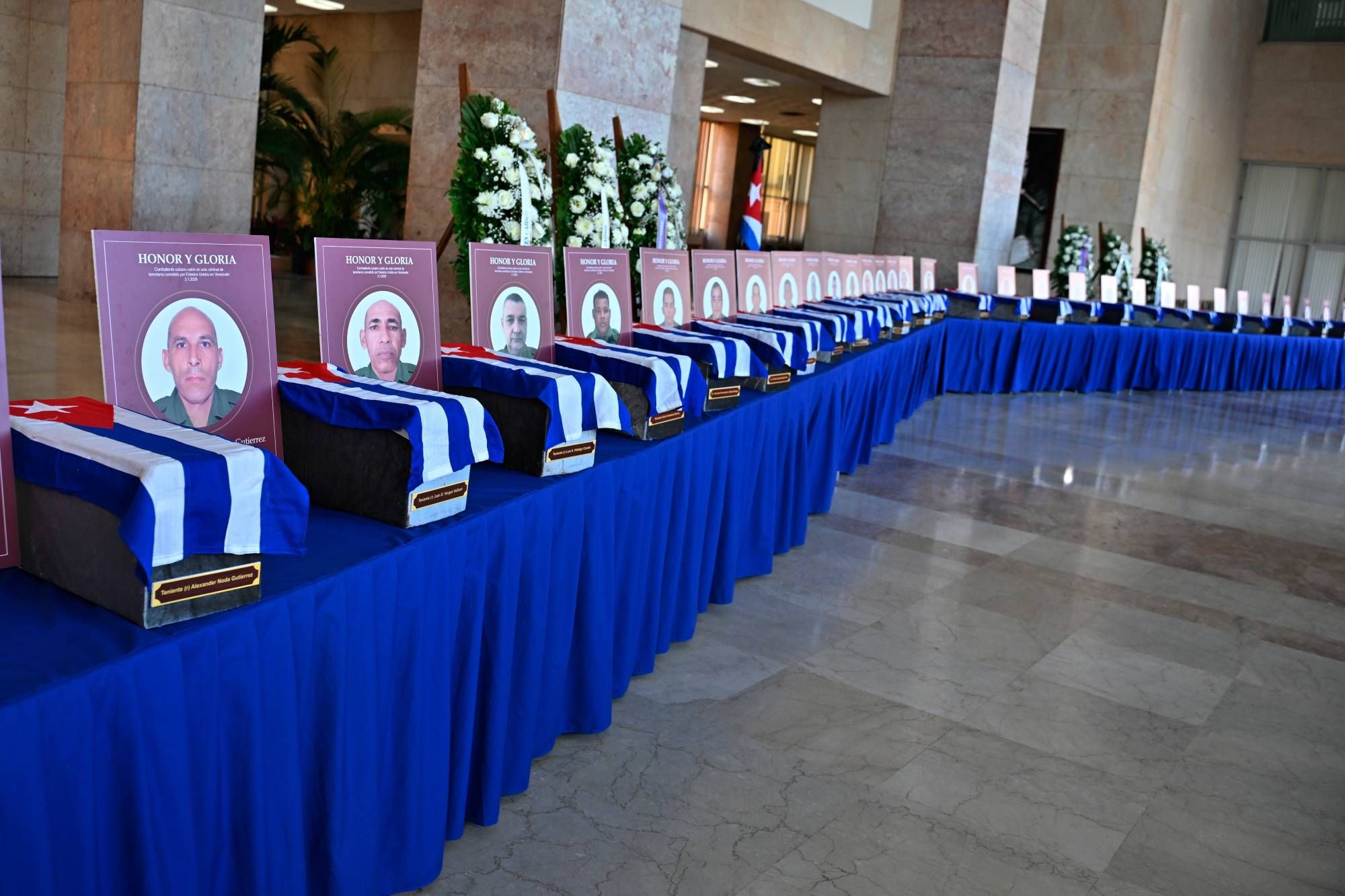 ورفع مسؤولون علماً ضخماً في مطار هافانا، بينما وقف الرئيس ميغيل دياز - كانيل، مرتدياً الزي العسكري بوصفه القائد الأعلى للقوات المسلحة، صامتاً إلى جانب الرئيس السابق راؤول كاسترو، وبالقرب منهم ما بدا أنهم أقارب القتلى.