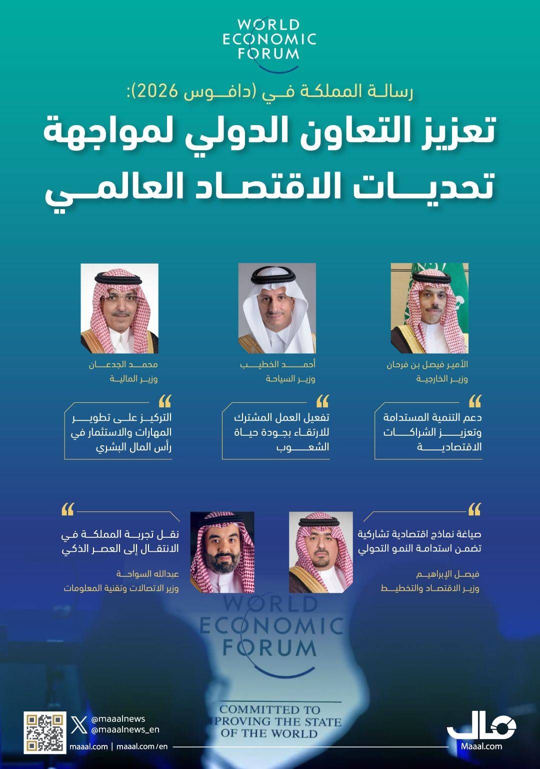 وفي قلب هذه التحولات الكبرى، تبرز السعودية بوفد رفيع المستوى يضم نخبة من الوزراء والمسؤولين برئاسة وزير الخارجية الأمير فيصل بن فرحان، في مشاركة تعكس مكانة الرياض كقوة موازنة واستقرار في الاقتصاد العالمي. لا تقتصر المشاركة السعودية على استعراض منجزات «رؤية 2030» فحسب، بل تمتد لتلعب دور «الجسر» في الحوارات الدولية المعقدة؛ حيث تضع المملكة ثقلها في نقاشات أمن الطاقة، والتحول الأخضر، والابتكار التقني، مؤكدة أنها شريك لا غنى عنه في صياغة أي «صفقة عالمية» جديدة تضمن استدامة سلاسل الإمداد واستقرار الأسواق.
