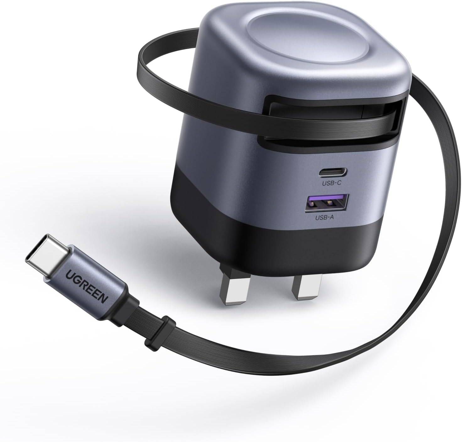 • تصميم مبتكر بكابل مدمج وقابل للسحب: لعل التصميم الذكي للشاحن، الذي يدمج كابل «يو إس بي تايب - سي» القابل للسحب بطول 69 سنتيمتراً بقدرة 45 واط، من أبرز مزاياه، مما يغنيك تماماً عن فوضى الأسلاك المتشابكة في حقيبتك أو على مكتبك. ويتميز الكابل بآلية سلسة تسمح بسحبه لثمانية أطوال مختلفة لتناسب احتياجاتك، مع إمكانية إعادته للداخل بلمسة واحدة للتخزين المدمج. هذا التصميم، جنباً إلى جنب مع القابس القابل للطي وحجمه الصغير الذي يقل بنسبة 30 في المائة عن الشواحن التقليدية، يجعله مثالياً للسفر والتنقل الدائم.