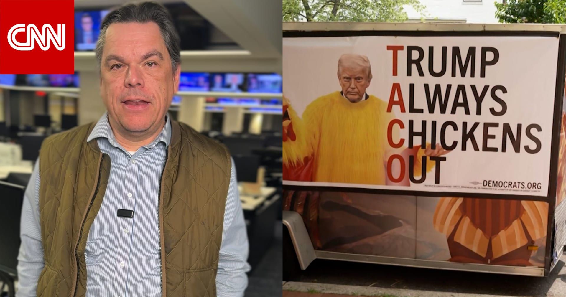 يشرح محلل CNN، ستيفن كولينسون، الأسباب التي دفعت ترامب إلى التراجع فجأة، ويتطرق إلى الاختصار الساخر بالإنجليزية"تاكو"، التي ترمز إلى أن "ترامب دائمًا يجبُنُ".