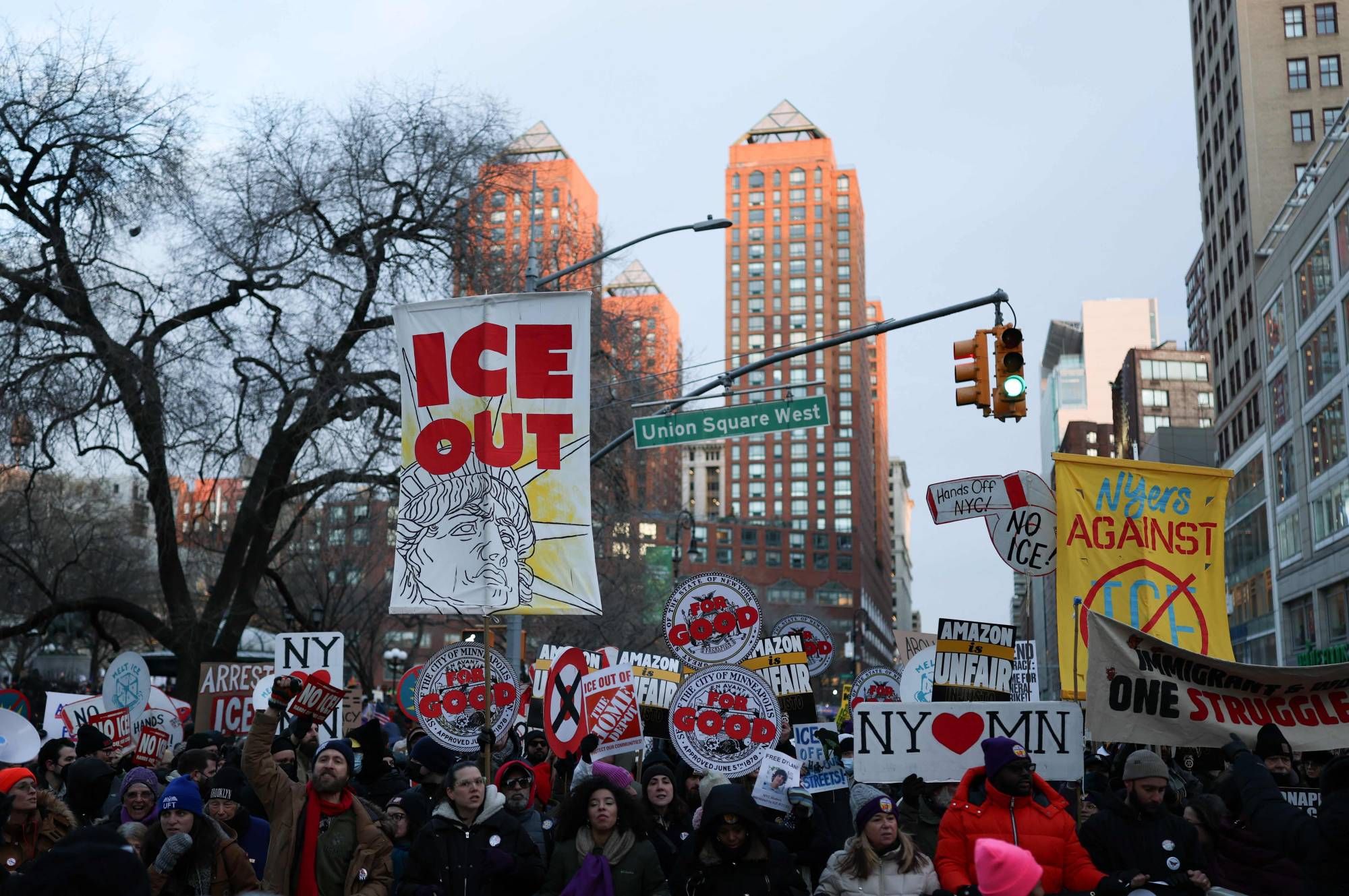 هذا كله يفسر لماذا انتقل الاحتجاج إلى مانهاتن بسرعة. في نيويورك، تظاهر آلاف في البرد، ورفعوا صور الطفل المحتجز وشعارات تتهم الإدارة بـ«القسوة»، وتوقفوا أمام شركات يرى ناشطون أنها تسهّل منظومة الترحيل عبر التكنولوجيا والبيانات. الرسالة كانت واضحة: ما يجري في مينيسوتا ليس «حالة محلية شاذة»، بل نموذج يُخشى تعميمه.