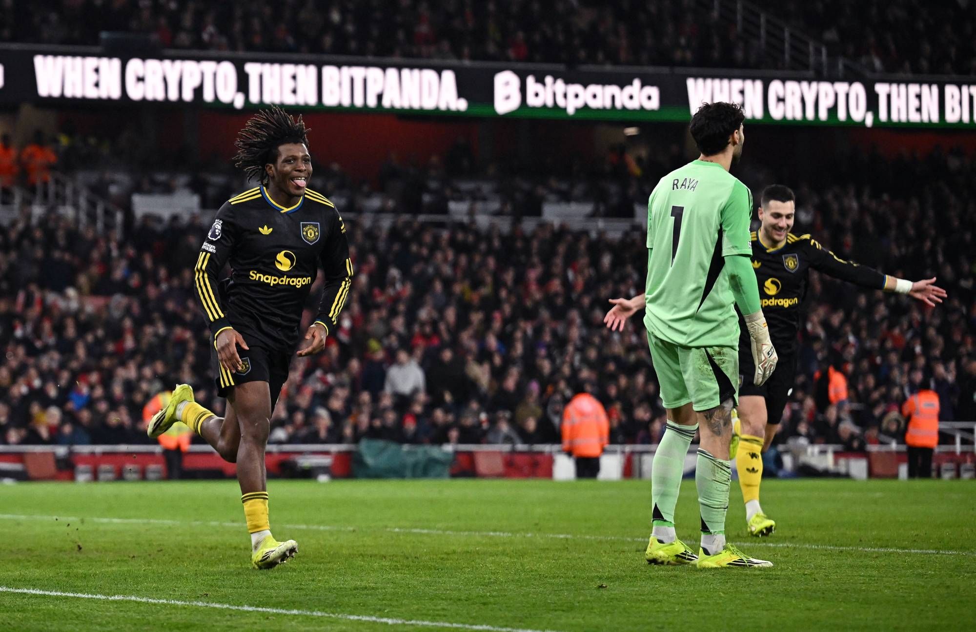 وفي الدقيقة 29، حوّل ليساندرو مارتينيز الكرة بالخطأ إلى مرماه تحت ضغط من يورين تيمبر، ليمنح آرسنال التقدم، لكن آرسنال بدا متوتراً في الاستحواذ على الكرة. وأهدى مارتن زوبيميندي برايان مبويمو فرصة التعادل بعد ثماني دقائق، إذ مرر تمريرة خاطئة وضعت اللاعب الكاميروني في مواجهة المرمى، فتجاوز ديفيد رايا ببراعة وسدد الكرة بذكاء. وتقدم مانشستر يونايتد بعد خمس دقائق من بداية الشوط الثاني، عندما استلم باتريك دورغو تمريرة برونو فرنانديز وسدد كرة رائعة من مسافة 25 ياردة ارتطمت بأسفل عارضة رايا ودخلت المرمى. واعتقد آرسنال أنه انتزع نقطة ثمينة عندما سجل ميكيل ميرينو هدف التعادل بعد ارتباك أمام المرمى إثر ركلة ركنية نفذها بوكايو ساكا، لكن البديل كونيا كانت له الكلمة الأخيرة، حيث سدد كرة رائعة من حافة منطقة الجزاء ليمنح مانشستر يونايتد فوزاً تاريخياً.
