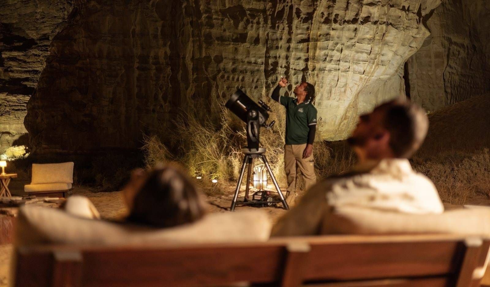 وتُختتم الأمسية بجلسة مراقبة للنجوم بإشراف فلكي محترف، فيتأمل الضيوف الأجرام السماوية والكويكبات عبر التلسكوبات، في تجربة تربط بين السماء والأرض.