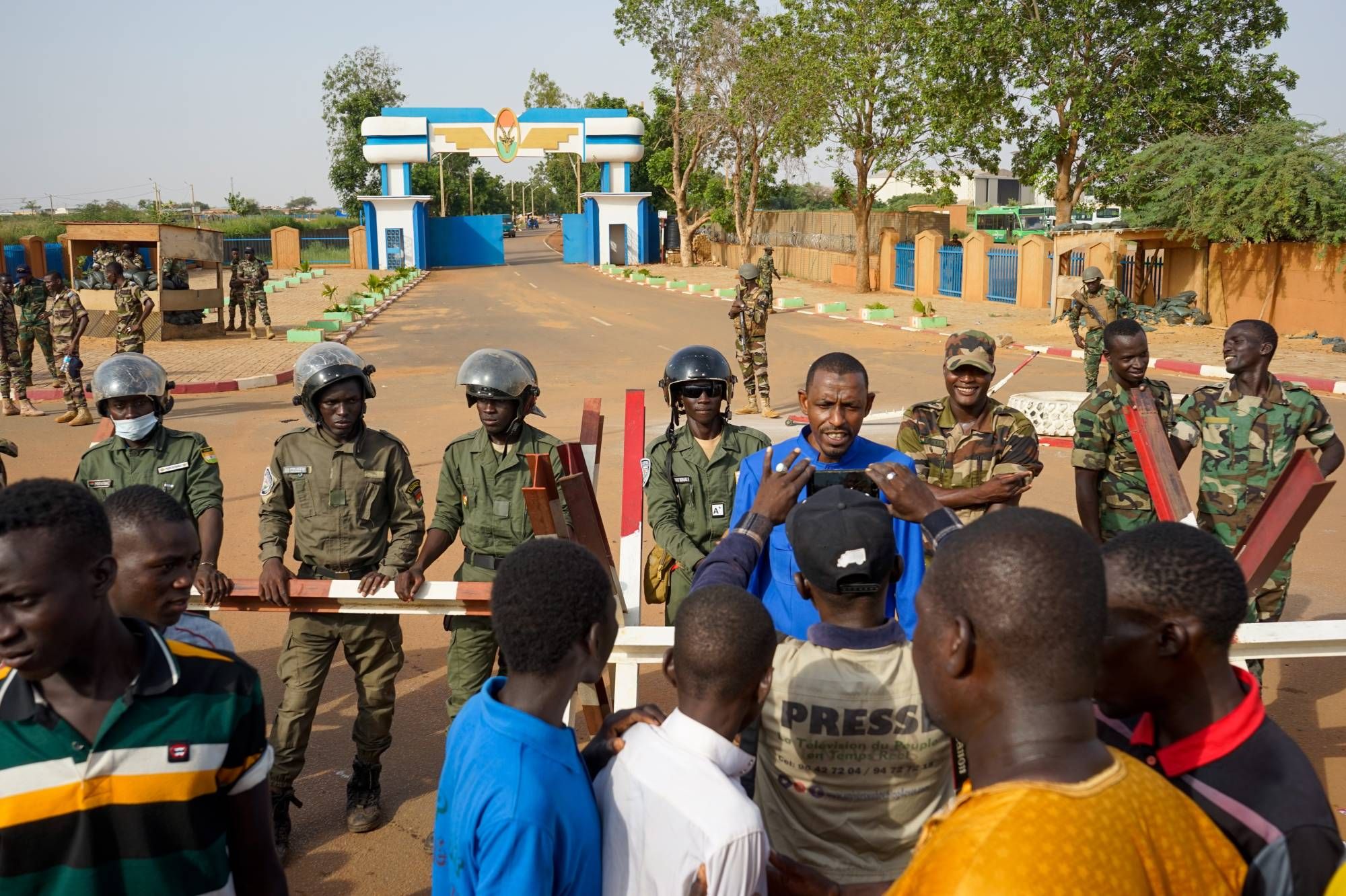 وقال تياني في تصريح صحافي عقب الزيارة، إن «مطار ديوري هاماني الدولي تعرّض خلال الليلة الماضية لمحاولة تسلل نفذها مرتزقة موجَّهون عن بُعد»، وأضاف تياني: «نذكّر رعاة هؤلاء المرتزقة، ولا سيما إيمانويل ماكرون، وباتريس تالون، والحسن واتارا، أننا استمعنا بما فيه الكفاية إلى نباحهم، وحان دورهم أيضاً ليستعدّوا لسماع زئيرنا»، فيما بدا أنها لغة تهديد.