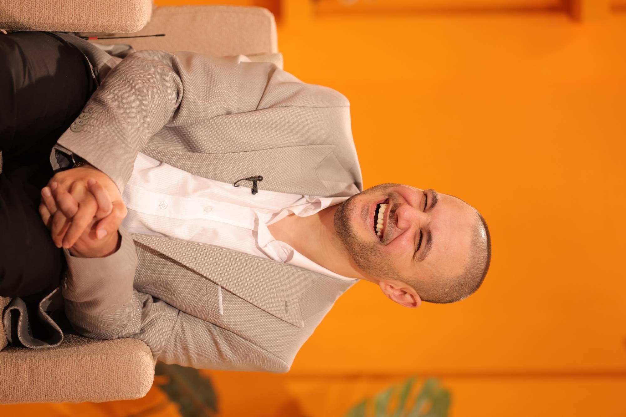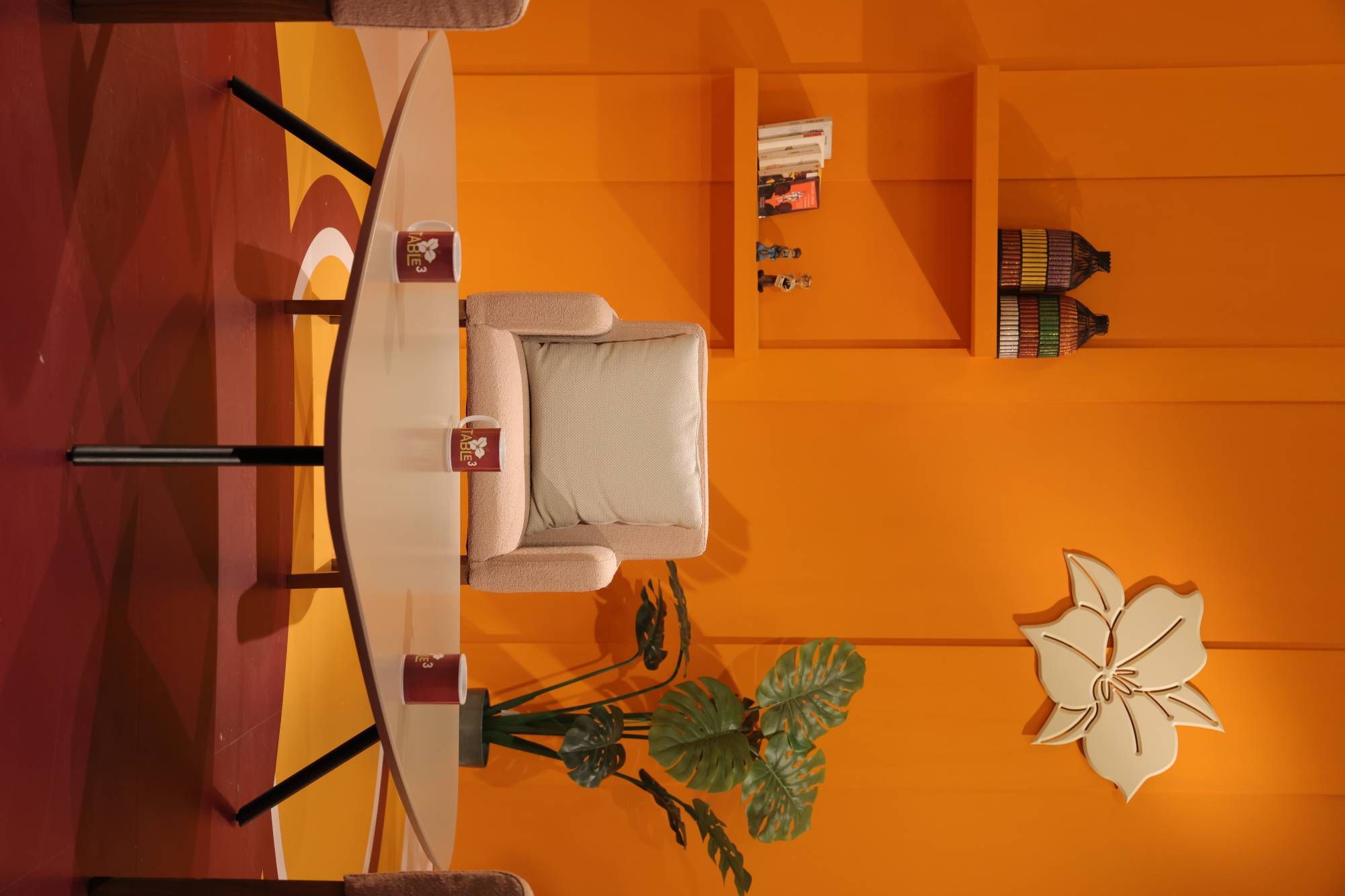 في الاستديو، تتوزَّع المقاعد حول طاولة تتوسَّط المكان، في ترتيب لا يخلو من دلالة. فالفكرة هنا الجلوس على مستوى واحد، حيث لا تفصل المسافة بين السائل والمُجيب بقدر ما تجمعهما. حتى العناصر البصرية تبدو خاضعة لهذه الرؤية، من ألوان دافئة وخطوط هادئة وتفاصيل محدودة توحي بأنّ التركيز يجب أن يبقى مُنصبّاً على الإنسان لا على ما يحيط به.