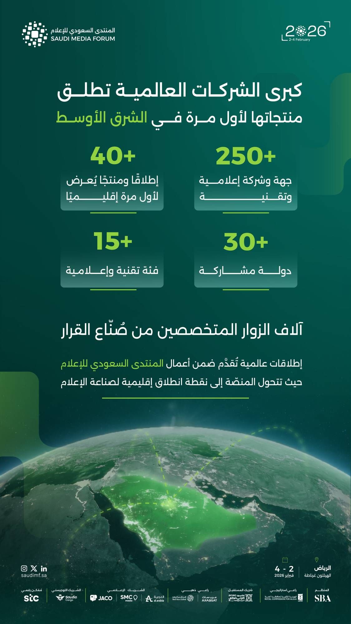 ويرتبط المنتدى بـ«رؤية المملكة 2030» بوصفها أداة للقوة الناعمة، ويبرز التحولات الإعلامية التي حققتها المملكة من خلال برامج تعزز البيئة التشريعية والممكنة، ويكتسب العام الحالي رمزية إضافية بمرور 10 أعوام على الرؤية؛ ما يعكس التقدم الوطني، وتفاعل المشاركين مع السياسات والإجراءات التحولية الطموحة.
