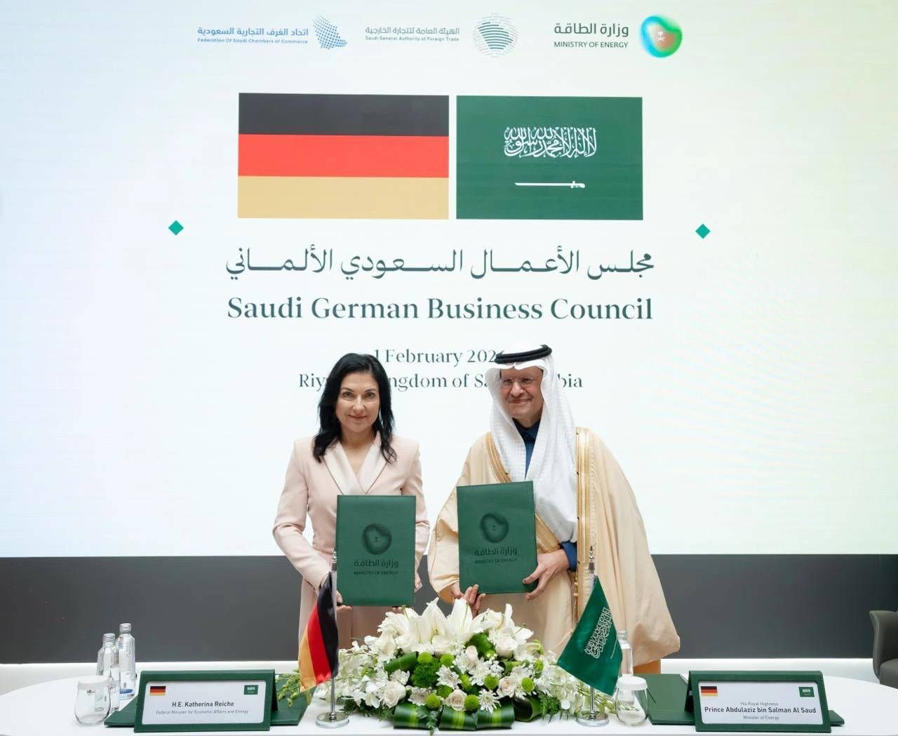 وزار عدد من المسؤولين الألمان السعودية خلال الأيام الماضية، كان آخرهم وزيرة الاقتصاد والطاقة كاترينا رايشه، التي وقَّعت اتفاقيات مع الأمير عبد العزيز بن سلمان وزير الطاقة السعودي، تهدف إلى زيادة التعاون في مجال الطاقة الخضراء.