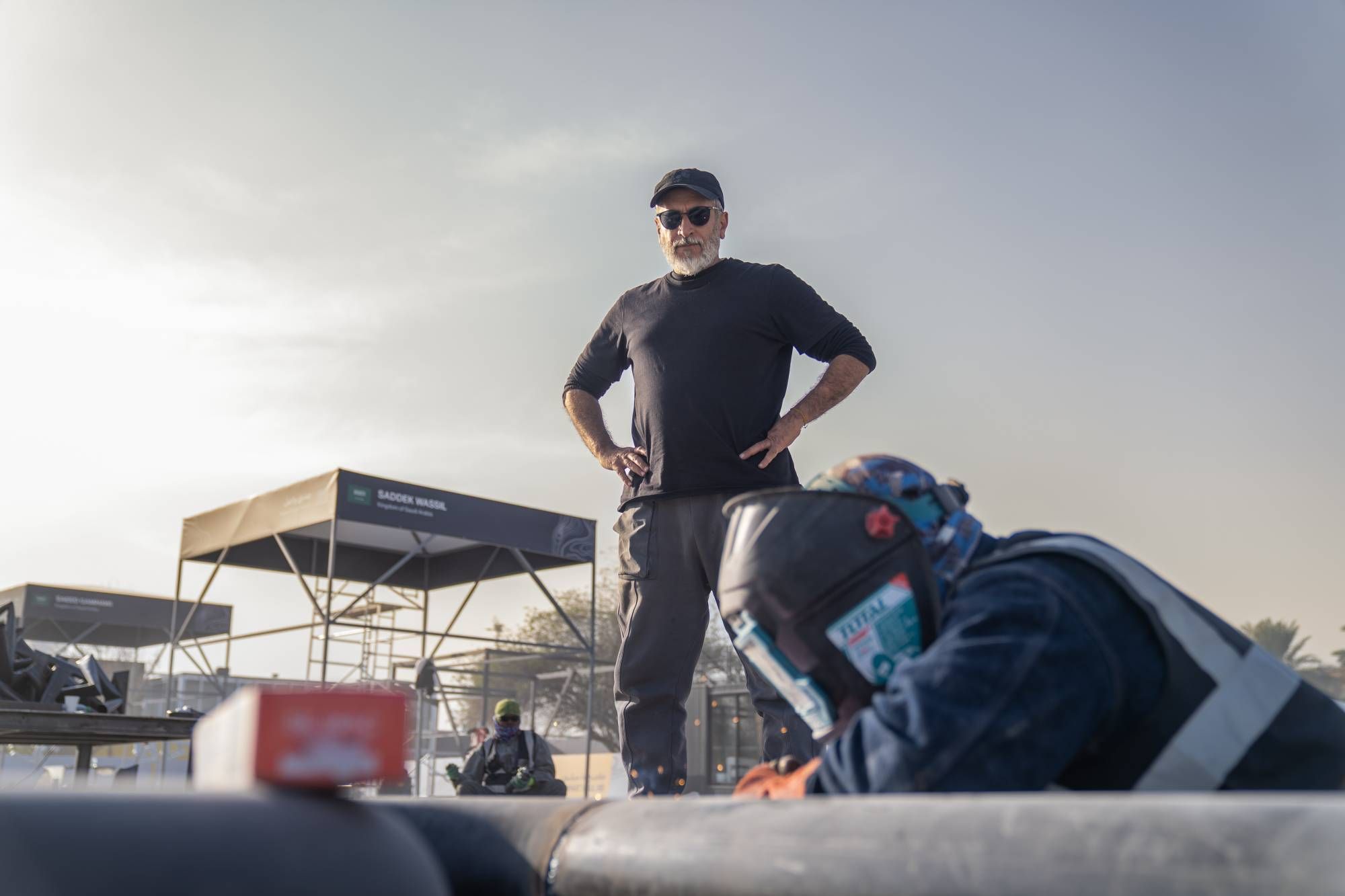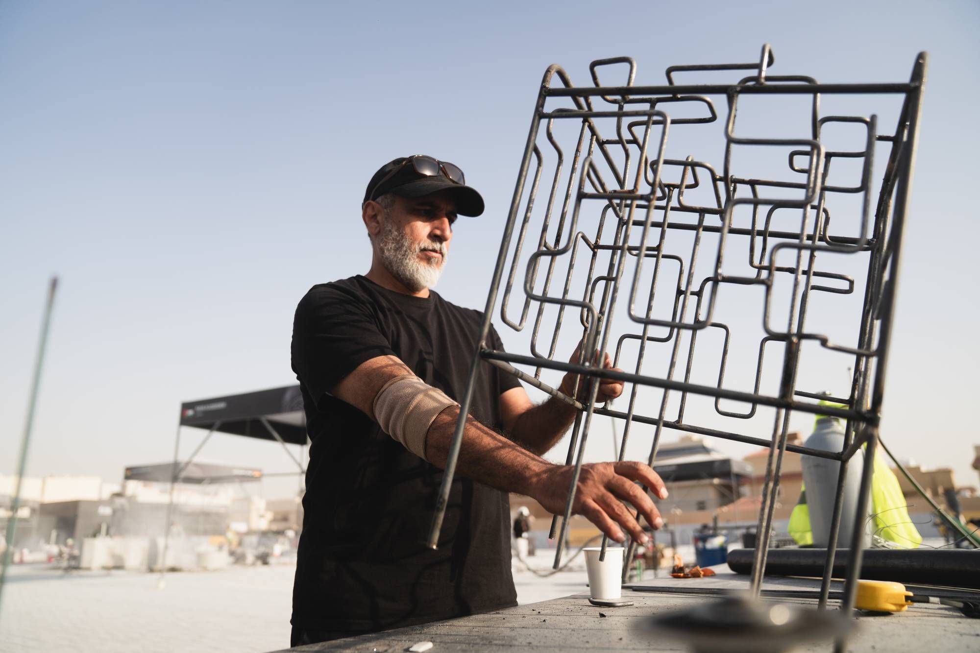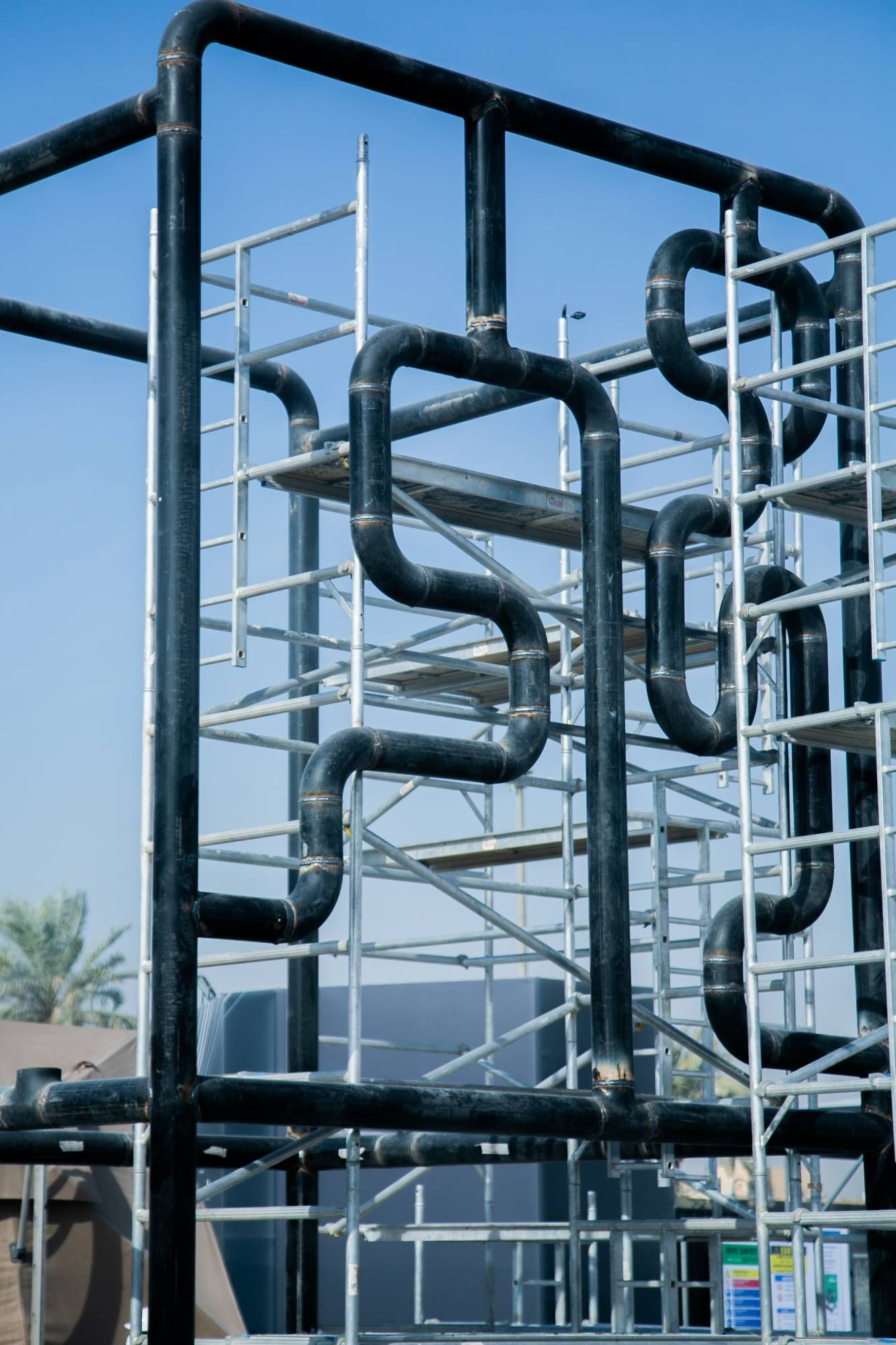 في عمله الضخم «شرايين الحياة»، لا يقدّم سعيد قمحاوي (مواليد الباحة، 1972) مجرد منحوتة، بل يخرج كواليس المدينة إلى الضوء. ففي هذا العمل، الذي يُعد الأطول في تاريخ الملتقى بارتفاع يصل إلى 7 أمتار، ينجز قمحاوي تركيباً نحتياً قائماً على شبكة معقّدة من الأنابيب المتقاطعة في الفضاء، محاكياً الشرايين التي تضخ الحياة في جسد المدينة الصامت.