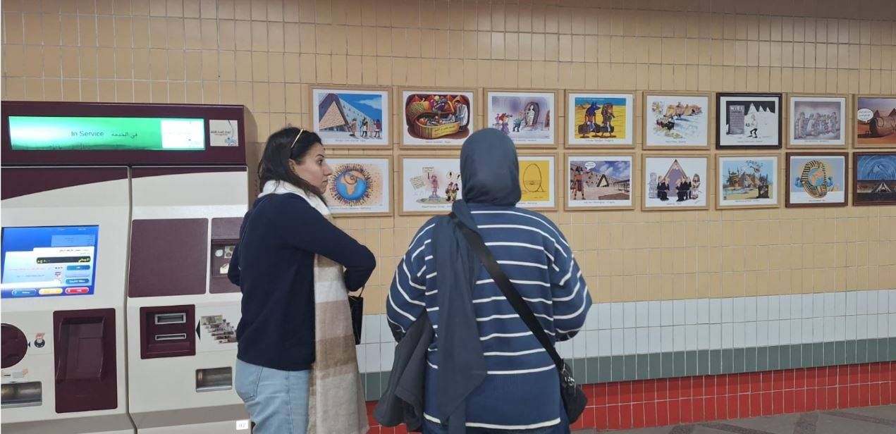 في مشهد غير معتاد، وقف عدد من الركاب يتأملون رسوم الكاريكاتير، مشيرين إليها وإلى ما تمثله من مشاهد مرحة أو قضايا جادة، وهي تجربة رآها كثيرون خارج المألوف، وتعمل على تقريب الفن للناس في مساحتهم اليومية.