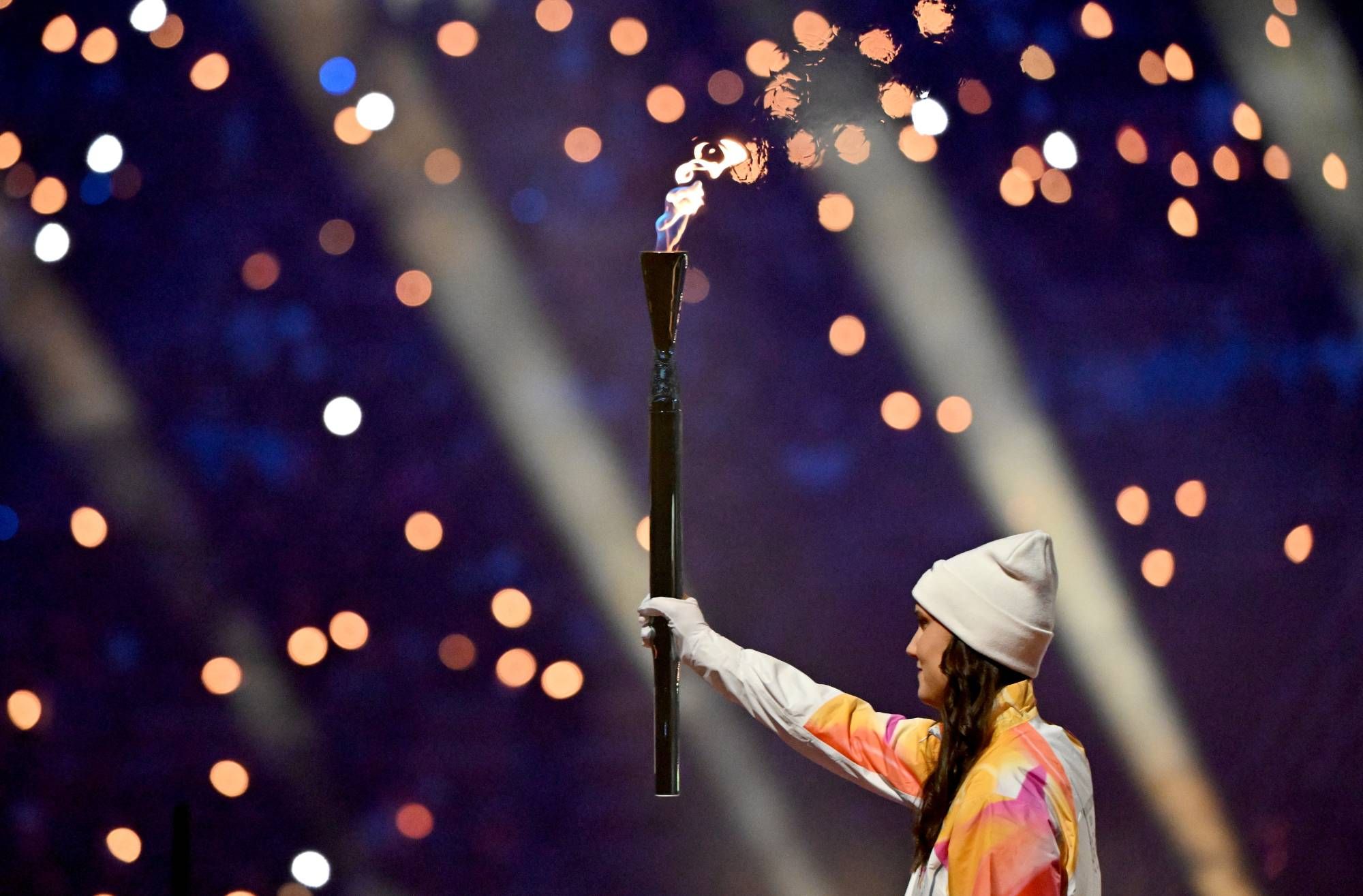 وفي كورتينا دامبيتسو، على بُعد 250 كيلومترا من العاصمة الاقتصادية لإيطاليا، تولّت المتزلجة الحالية صوفيا غودجا إضاءة المرجل الآخر، المستلهم تصميمه من عُقَد ليوناردو دا فينتشي.