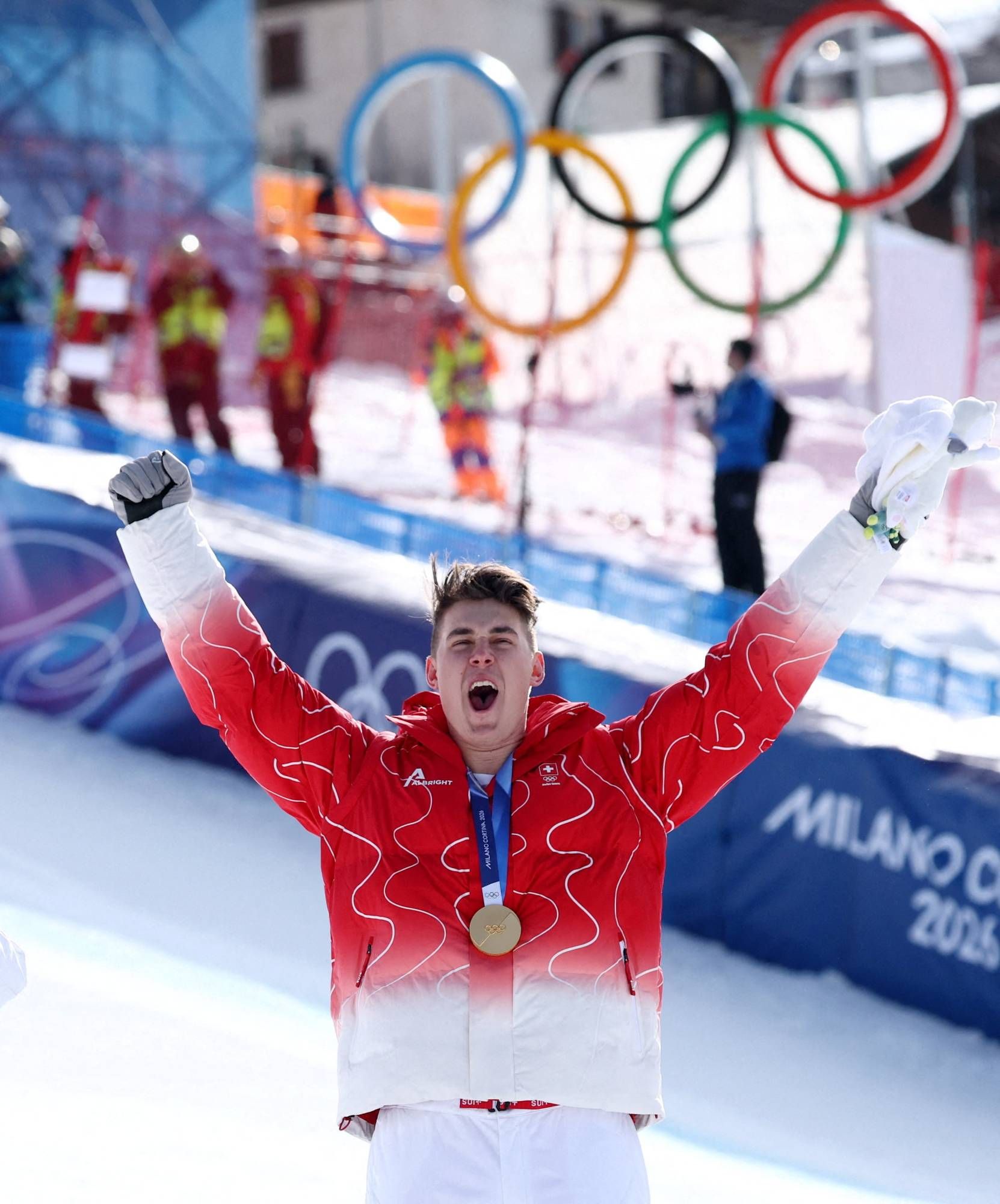 واستحوذ المتخصّصون الكبار في عالم التزلج على المراكز السبعة الأولى في سباق الانحدار في بورميو: ثلاثة سويسريين، إيطاليان، ونمسويان. وفي سن الرابعة والعشرين، أصبح ألمن الذي يشارك في أول ألعاب أولمبية له، أول بطل أولمبي في 2026، متقدّماً على الإيطاليين جوفاني فرانتزوني (24 عاماً)، نجم الجيل الجديد الآخر، ودومينيك باريس (36 عاماً)، الذي انتزع البرونزية على مساره المفضل، حيث فاز سبع مرات سابقاً في كأس العالم.
