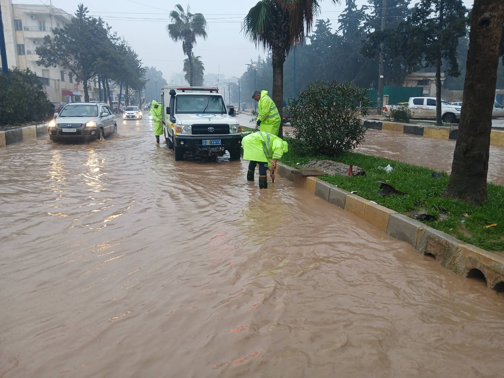 وأوضح مسؤول العمليات أنه، منذ اللحظة الأولى، باشرت فرق الدفاع المدني في مديرية إدلب نشر فرق الإنقاذ والإخلاء في المناطق المتضررة وفتح مجاري السيول لمنع توسع مناطق الغمر في خربة الجوز، حيث تم إخلاء العائلات المهددة بالانهيار والغرق إلى مراكز إيواء تم تأمينها من قبل وزارة الطوارئ وإدارة الكوارث ومحافظة إدلب، وجرى توزيع مواد إغاثية ومساعدات، مع تقييم ميداني للأضرار، وحصر المساعدات العاجلة، واتخاذ إجراءات الحد من المخاطر المباشرة على حياة المدنيين، وتعزيز المنظومة الصحية، وتوفير الآليات الثقيلة، ومازال العمل متواصلاً.