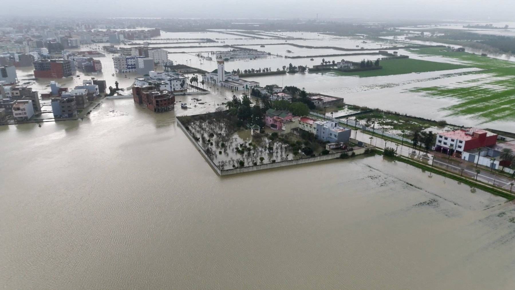 وتتعرض مناطق شمال المغرب لفيضانات وسيول قوية منذ أسبوع، فيما أعلنت السلطات عن إجلاء أكثر من 154 ألف شخص من أربعة أقاليم هي: العرائش، والقنيطرة، وسيدي قاسم، وسيدي سليمان، ضمن جهود حماية السكان من تداعيات الأمطار الغزيرة والسيول المستمرة لليوم الثاني عشر على التوالي، مع اتساع رقعة القرى المتضررة.