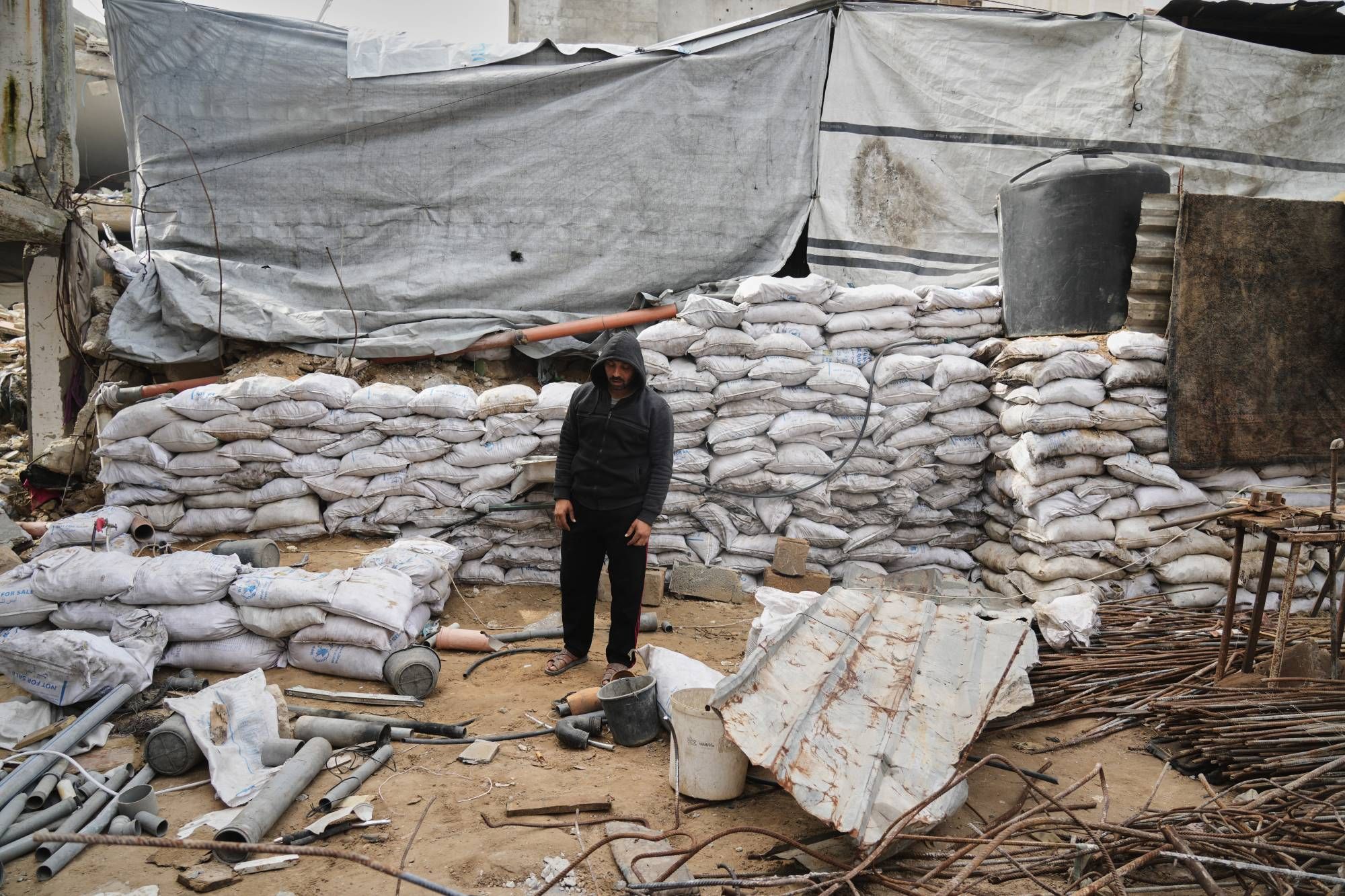 بحث مضنٍ عن الجثامينوبدأ البحث عن جثثهم. طلب في البداية المساعدة من الدفاع المدني في غزة، لكن فرق الإنقاذ لم تصل، إما بسبب خطورة الوضع وسط القصف الإسرائيلي المكثف، وإما لعدم امتلاكهم المعدات والآليات اللازمة لإزالة الأنقاض. لذا بدأ الحفر بنفسه. بدأ بالأسقف والجدران المنهارة، يكسرها إلى حجارة صغيرة ويضعها في أكياس. أكوام من عشرات الأكياس تُحيط بالموقع الآن كالجدار.